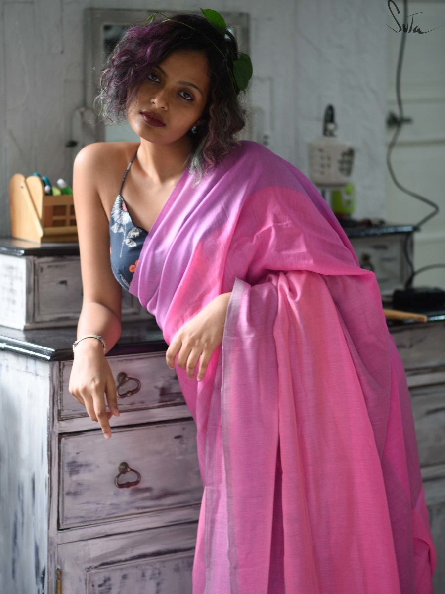 Cotton fabric dates back to some of the most ancient civilisations and it has a strong presence in the modern wardrobe as well. The softness and lightness of cotton combined with its strength and versatility makes it one of the most popular choices, especially for the Indian climate. We took this simple, elegant fabric and combined it with acrylic for that added sheen and voila! We love what we see and the saree falls so beautifully that it feels like second-skin!