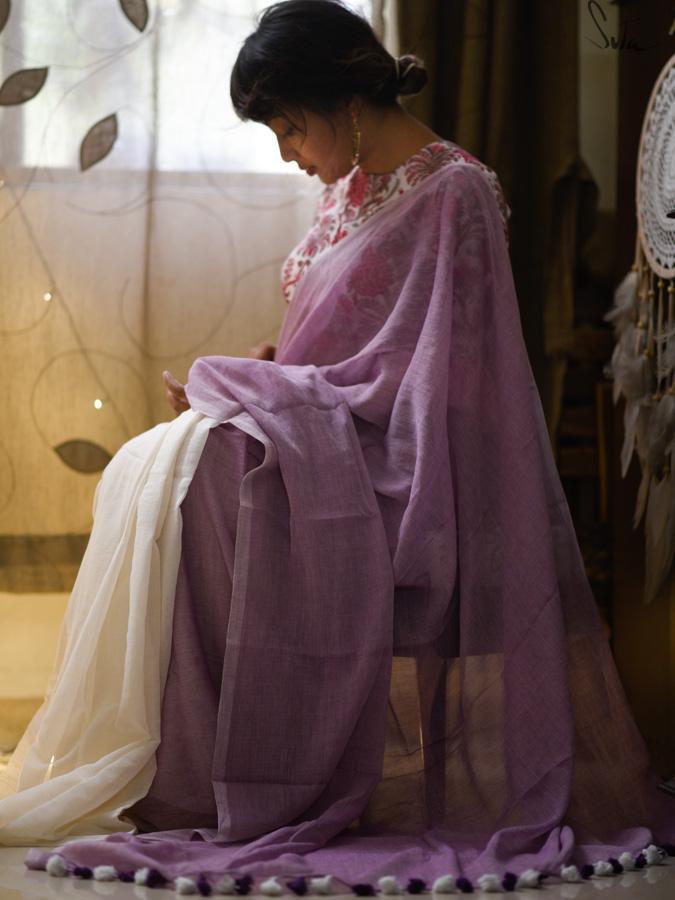 Two equally pristine and irresistible hues of white and purple on mul cotton is truly a ravishing combination. Let this beautiful bouquet wrap you in its prettiness!