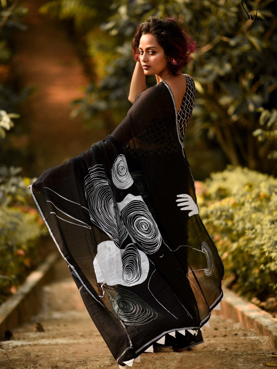 This beautiful saree brings together art and fashion. The design is screen-printed on the gorgeous fabric of made-in-heaven mul and modal blend.