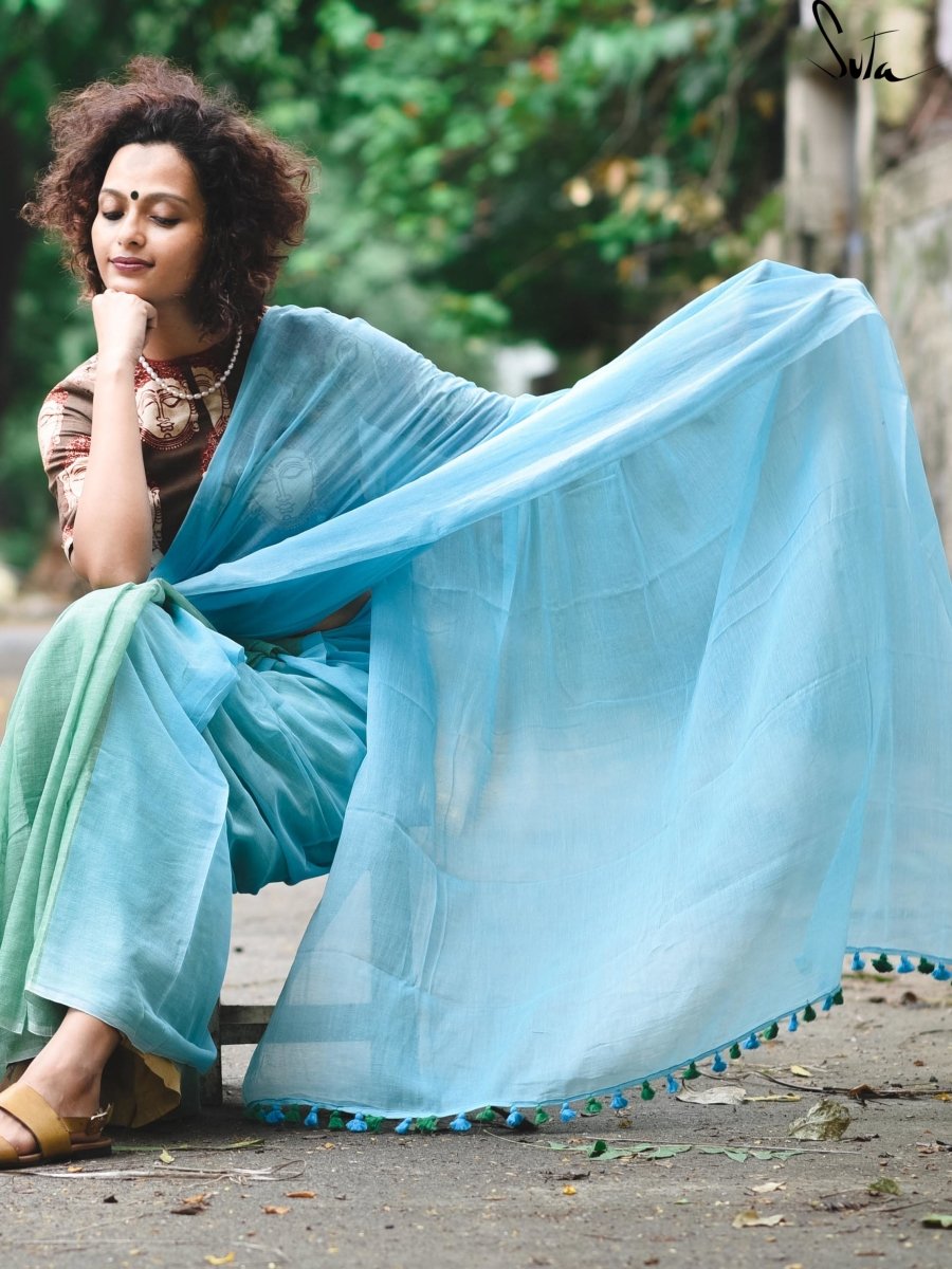 The mul cotton is what we call ‘Made in Heaven’ at Suta. Known in West Bengal as mul mul, the fabric is what can be categorised as muslin cotton. It is believed that this fine method of weaving cotton can be traced back to even before the Indus valley civilisation. What makes this fabric special is the almost magical process of weaving it. Cotton fibres are separated and spun into strong threads. The lightest and the most delicate fibres are separated and are then spun into muslin thread. These are then woven into fabrics by skilled weavers. The history of muslin weaving is a beautiful chapter in the history of Indian textiles. The process of the yore was much more complex and involved many unique tools that look primitive but worked like magic. The upper jaw of a catfish was used to initially clean the cotton before spinning. To separate the lightest fibres, a Dhunkar (a bamboo bow) was used, which when strung in a distinctive way made the lighter fibres rise above the heavier ones. This process gave the title ‘woven air’ to the muslin fabric. Weavers famously wove on looms that were at ground level and operated the looms from pits dug in the ground. Even during the Mughal era, the muslin fabric was seen as a symbol of power for its finesse. History is full of anecdotes to prove the awe that the muslin fabric generated. Emperor Aurangzeb is said to have chided his daughter Zeb-un-Nisa for appearing naked in the court when in reality she had been wearing several layers of the muslin cloth! Such was the fabric’s delicateness. The almost invisible fabric had made an Arab traveller in the 10th century remark that the degree of fineness is such that a garment can be drawn through a ring of a middling size. During the British colonisation and even during the Mughal rule, the art of weaving muslin took a hit as weavers were treated poorly and drought hit many of the weaving centres. As a result, today, the process of weaving has seen a lot of change. Nevertheless, the essence of it hasn’t changed and the charm of the fabric still remains.