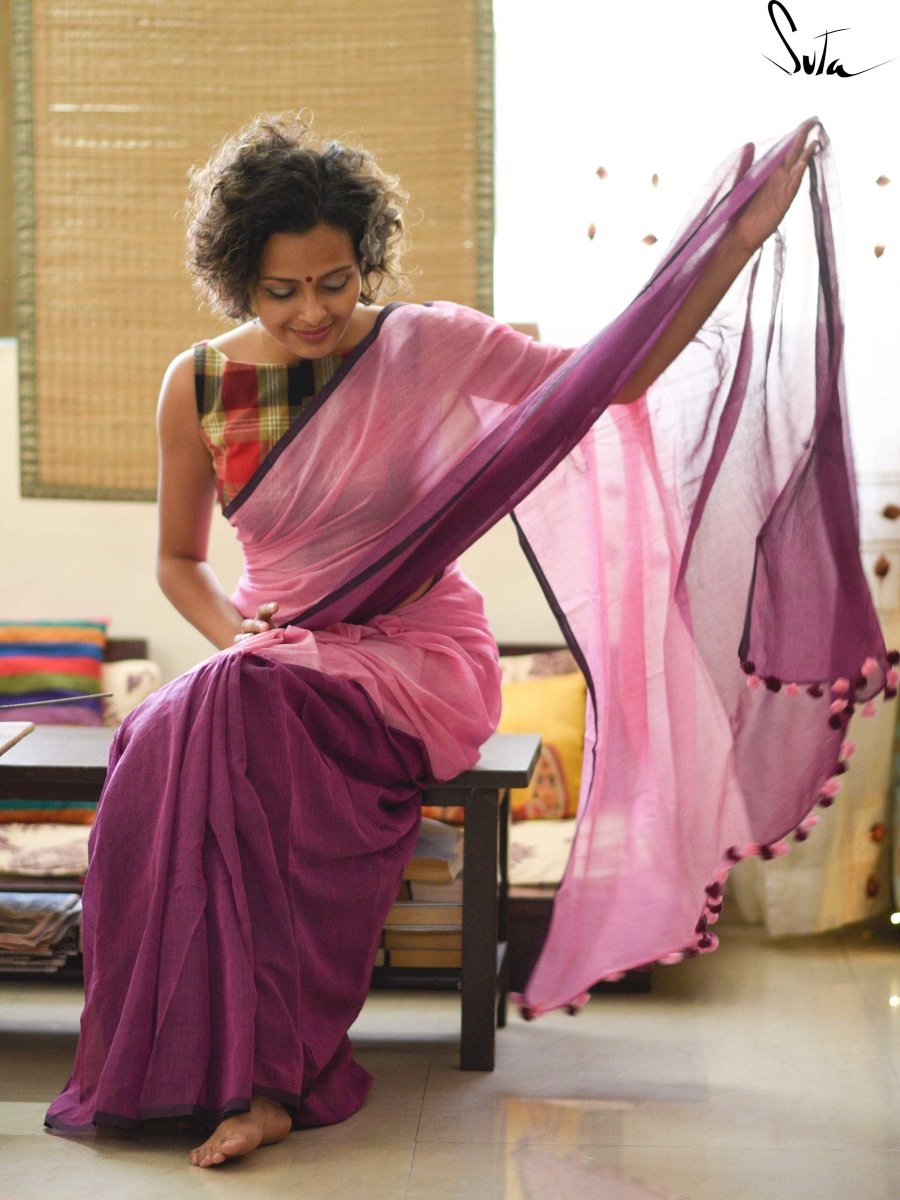 The mul cotton is what we call ‘Made in Heaven’ at Suta. Known in West Bengal as mul mul, the fabric is what can be categorised as muslin cotton. It is believed that this fine method of weaving cotton can be traced back to even before the Indus valley civilisation. What makes this fabric special is the almost magical process of weaving it. Cotton fibres are separated and spun into strong threads. The lightest and the most delicate fibres are separated and are then spun into muslin thread. These are then woven into fabrics by skilled weavers. The history of muslin weaving is a beautiful chapter in the history of Indian textiles. The process of the yore was much more complex and involved many unique tools that look primitive but worked like magic. The upper jaw of a catfish was used to initially clean the cotton before spinning. To separate the lightest fibres, a Dhunkar (a bamboo bow) was used, which when strung in a distinctive way made the lighter fibres rise above the heavier ones. This process gave the title ‘woven air’ to the muslin fabric. Weavers famously wove on looms that were at ground level and operated the looms from pits dug in the ground. Even during the Mughal era, the muslin fabric was seen as a symbol of power for its finesse. History is full of anecdotes to prove the awe that the muslin fabric generated. Emperor Aurangzeb is said to have chided his daughter Zeb-un-Nisa for appearing naked in the court when in reality she had been wearing several layers of the muslin cloth! Such was the fabric’s delicateness. The almost invisible fabric had made an Arab traveller in the 10th century remark that the degree of fineness is such that a garment can be drawn through a ring of a middling size. During the British colonisation and even during the Mughal rule, the art of weaving muslin took a hit as weavers were treated poorly and drought hit many of the weaving centres. As a result, today, the process of weaving has seen a lot of change. Nevertheless, the essence of it hasn’t changed and the charm of the fabric still remains.
