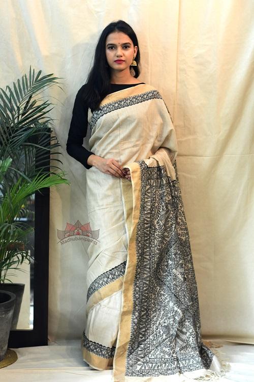 Madhubani Paints Abstract Nature Madhubani Handpainted Saree