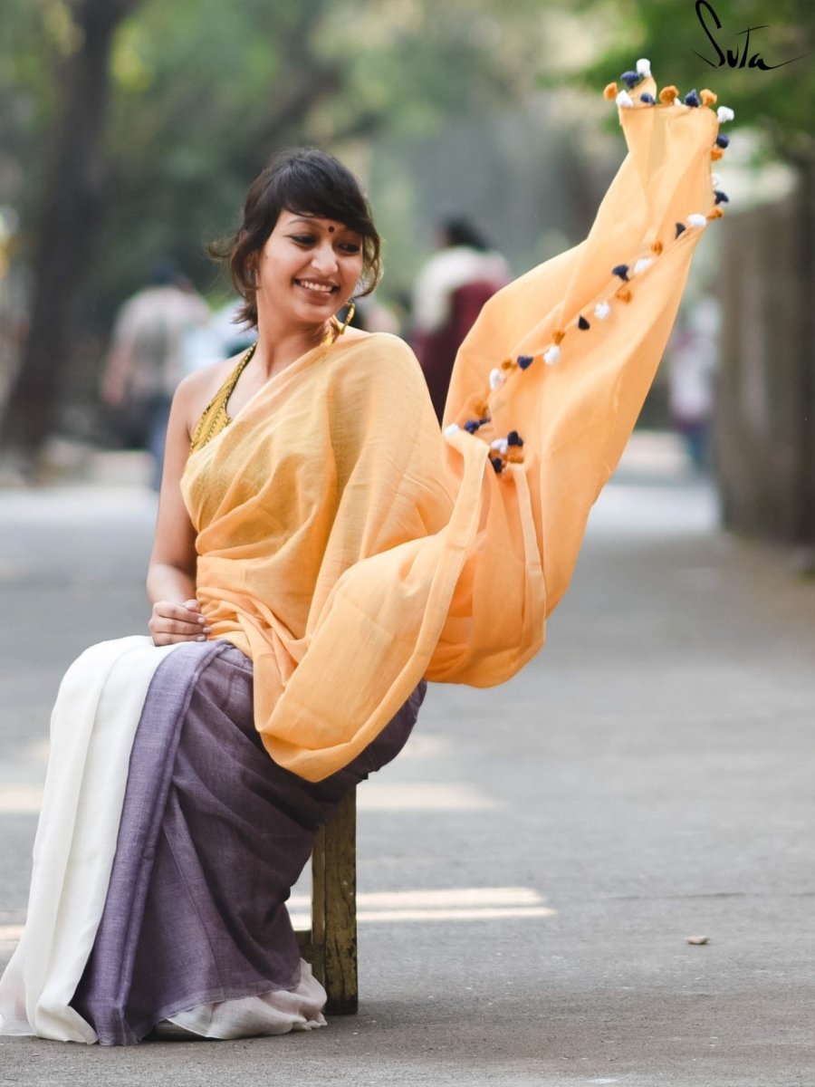 The mul cotton is what we call ‘Made in Heaven’ at Suta. Known in West Bengal as mul mul, the fabric is what can be categorised as muslin cotton. It is believed that this fine method of weaving cotton can be traced back to even before the Indus valley civilisation. What makes this fabric special is the almost magical process of weaving it. Cotton fibres are separated and spun into strong threads. The lightest and the most delicate fibres are separated and are then spun into muslin thread. These are then woven into fabrics by skilled weavers. The history of muslin weaving is a beautiful chapter in the history of Indian textiles. The process of the yore was much more complex and involved many unique tools that look primitive but worked like magic. The upper jaw of a catfish was used to initially clean the cotton before spinning. To separate the lightest fibres, a Dhunkar (a bamboo bow) was used, which when strung in a distinctive way made the lighter fibres rise above the heavier ones. This process gave the title ‘woven air’ to the muslin fabric. Weavers famously wove on looms that were at ground level and operated the looms from pits dug in the ground. Even during the Mughal era, the muslin fabric was seen as a symbol of power for its finesse. History is full of anecdotes to prove the awe that the muslin fabric generated. Emperor Aurangzeb is said to have chided his daughter Zeb-un-Nisa for appearing naked in the court when in reality she had been wearing several layers of the muslin cloth! Such was the fabric’s delicateness. The almost invisible fabric had made an Arab traveller in the 10th century remark that the degree of fineness is such that a garment can be drawn through a ring of a middling size. During the British colonisation and even during the Mughal rule, the art of weaving muslin took a hit as weavers were treated poorly and drought hit many of the weaving centres. As a result, today, the process of weaving has seen a lot of change. Nevertheless, the essence of it hasn’t changed and the charm of the fabric still remains.
