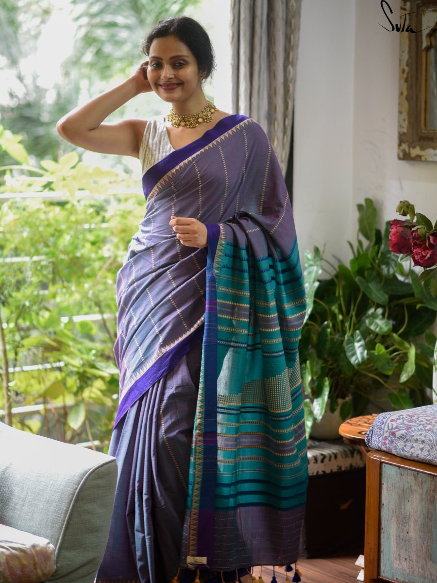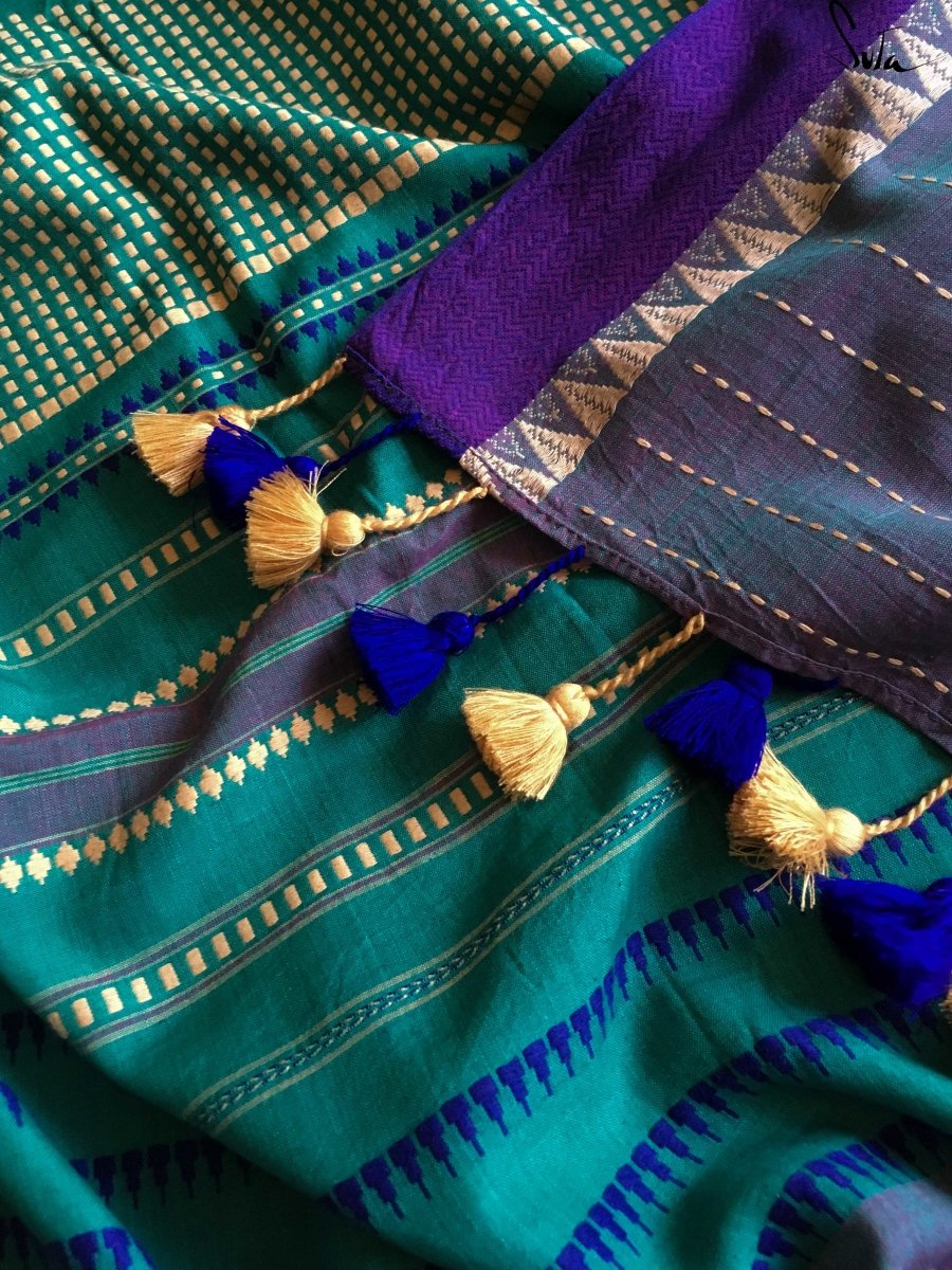 This beautiful blue and green handloom cotton saree is a real heart stealer!