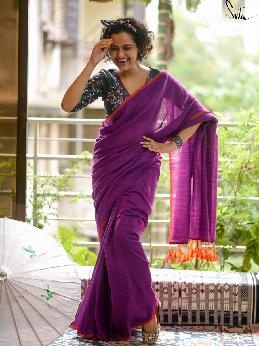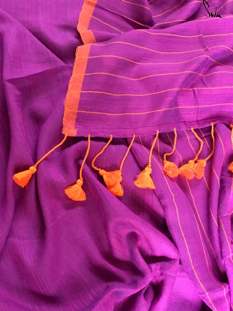This pretty pink saree in a blend of mul and viscose slub is a must-have!