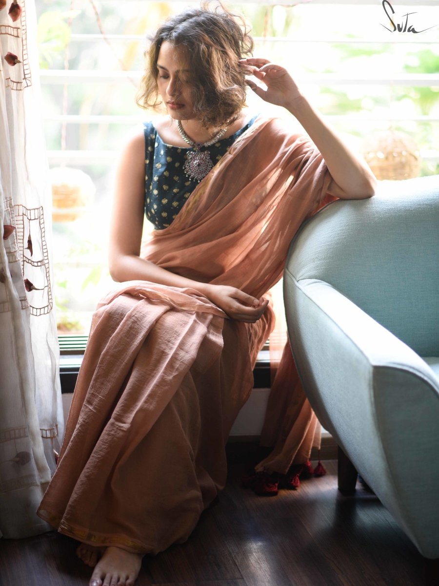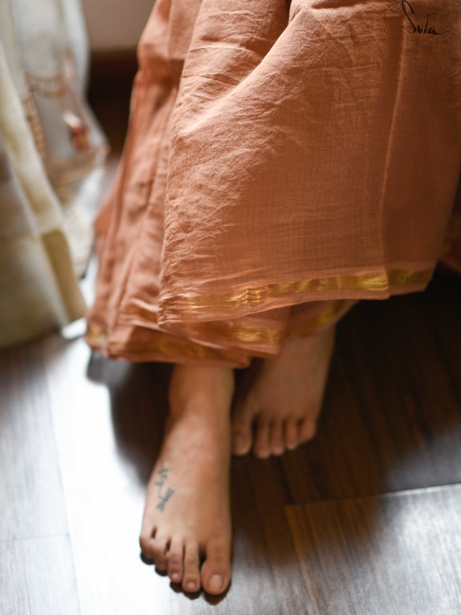 This brown and gold handloom cotton saree is earthy, elegant and alluring.