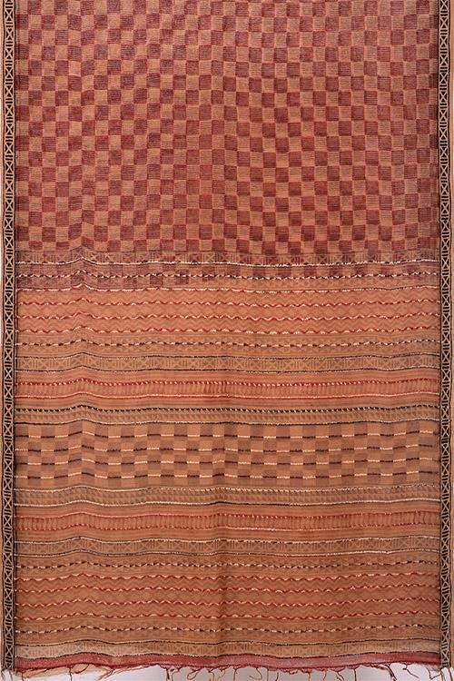Signature hand-weaved in Filature Silk and Hand Block Printed with Natural Dye in geometric trendy design.
