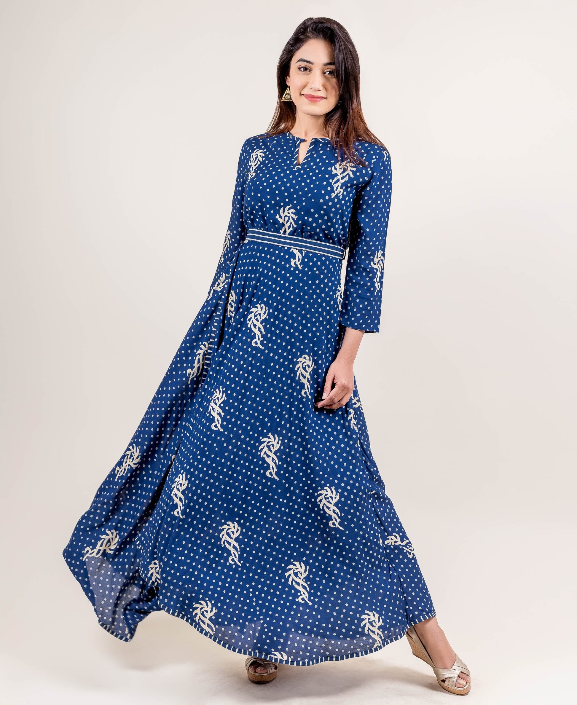 - Style / Pattern – Hand Block Print / Layered and Dotted Indo Western Dress