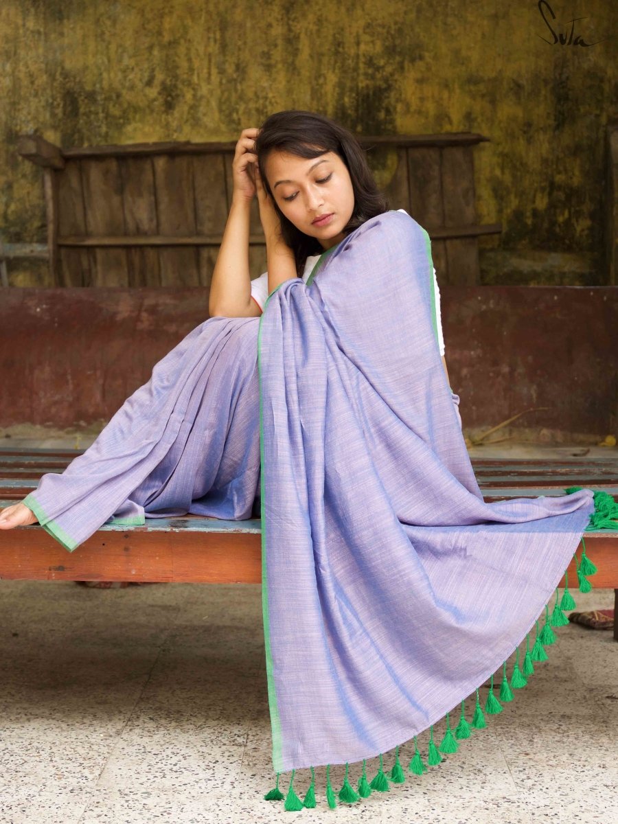 For Suta products, viscose fibre as weft is woven with cotton fibre as warp to create a fabric that is a magical blend of the comfort of cotton and the subtle shine of viscose. This fabric feels beautifully soft to the skin.