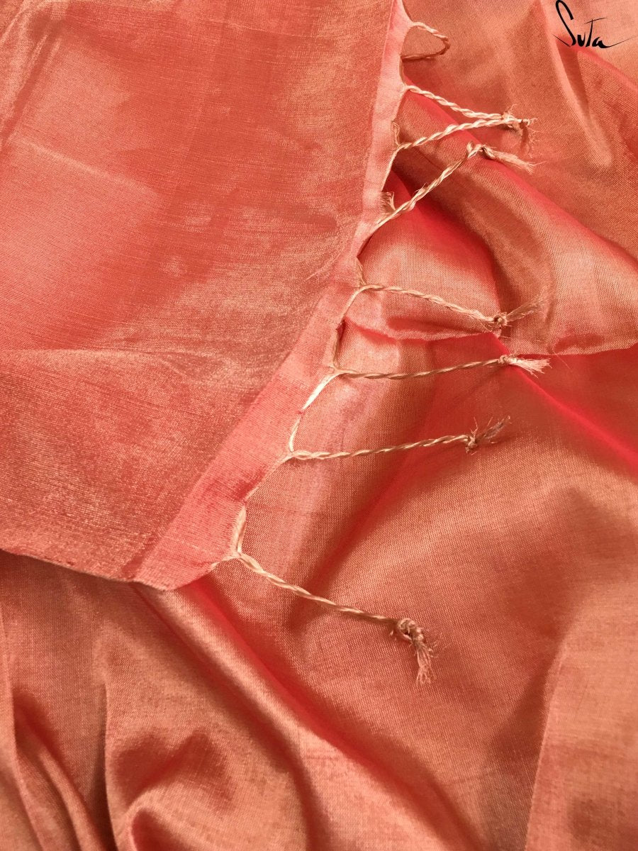 On the loom, the zari is an important part of this saree and it comes together beautifully with the other fibres to give an ethereal look and feel! Zari has always been used to infuse that special glow, making fabrics look festive and full of shine. As the zari celebrates you by building a halo of light around you, revel in the beauty and join in the celebration!