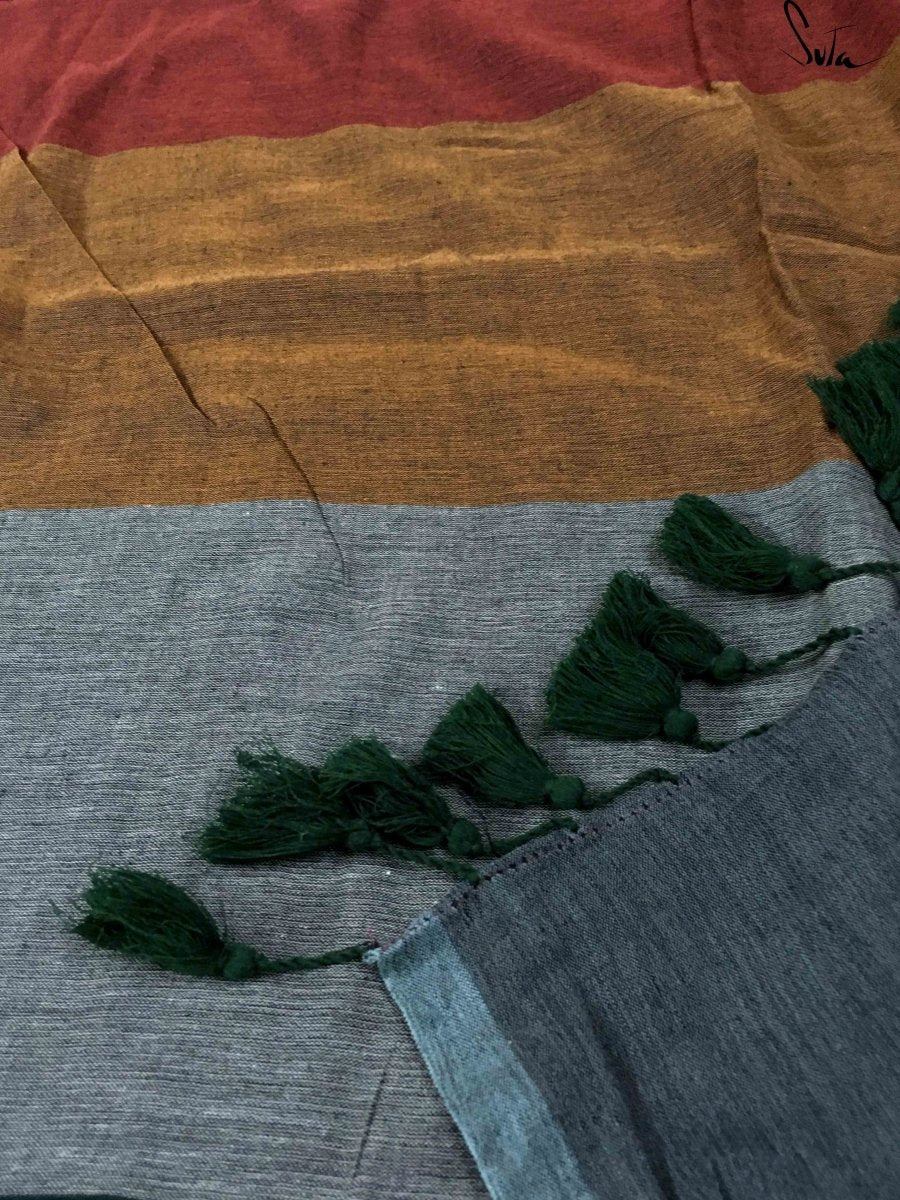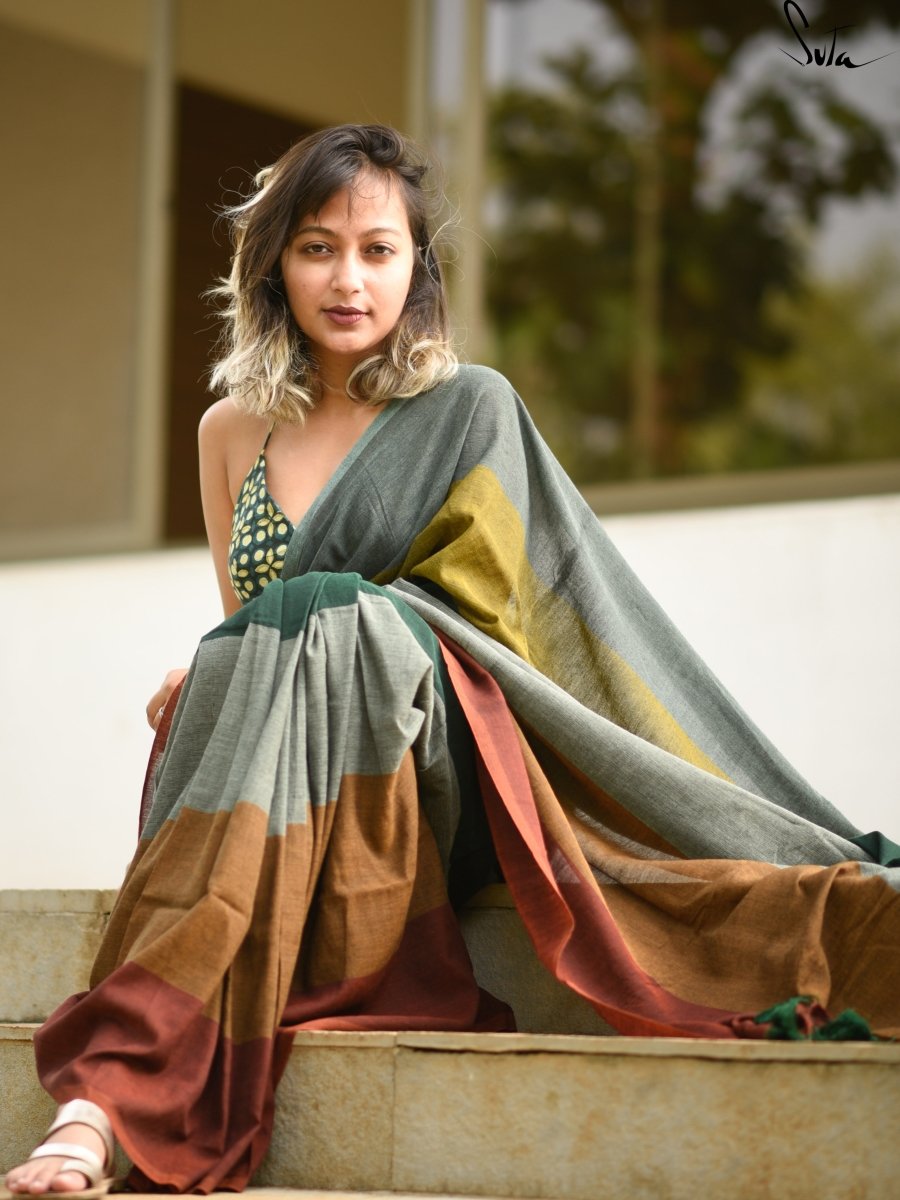 This saree in olive, rust and multicoloured hues is simply beautiful!