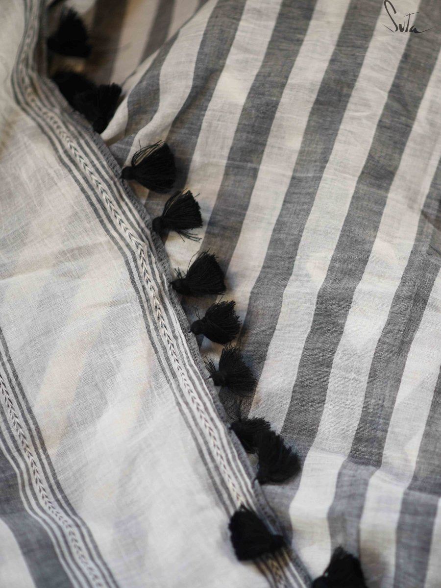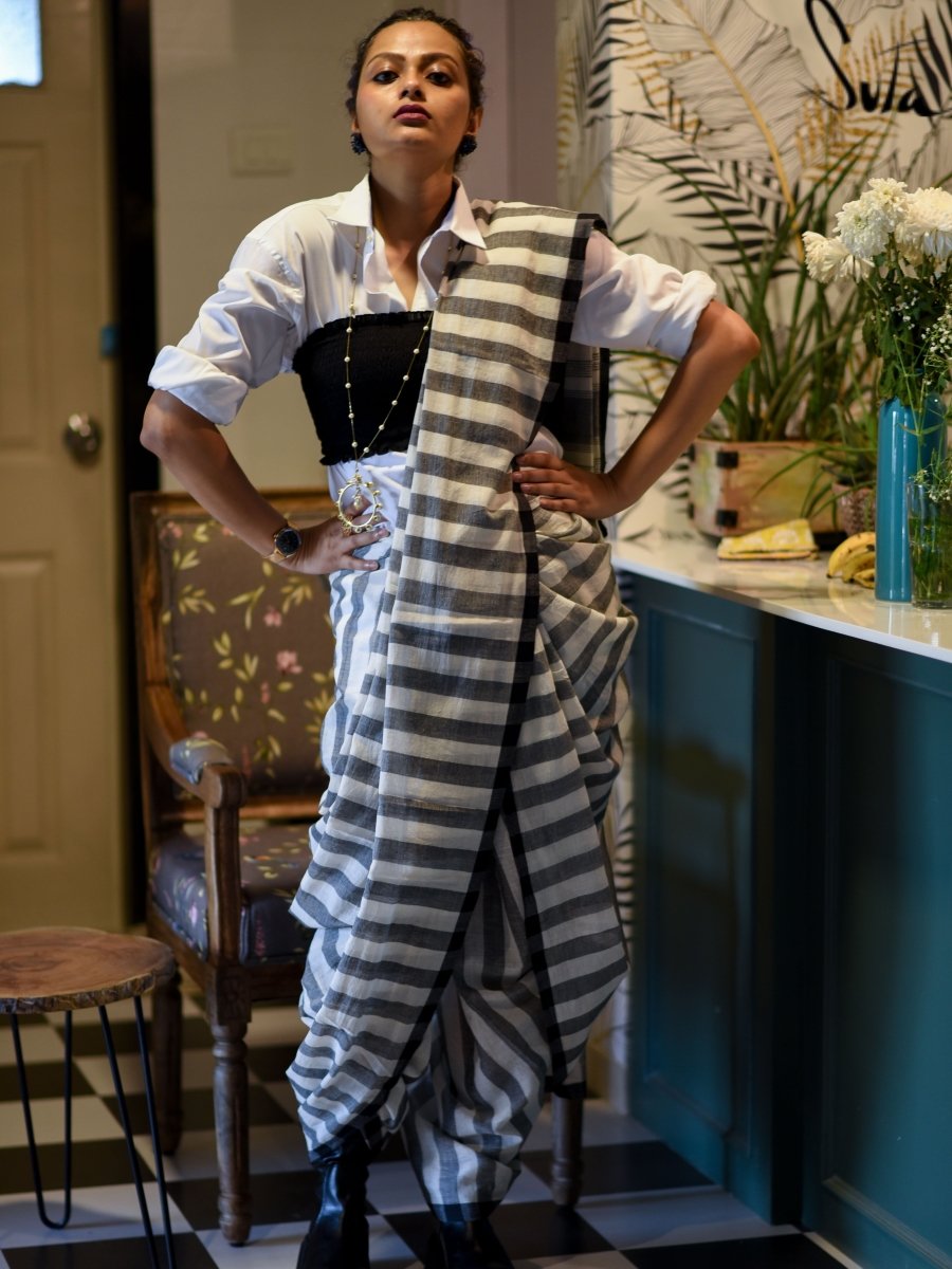 This arresting black and white handloom cotton saree is a dream to drape and a dream-come-true to experience!