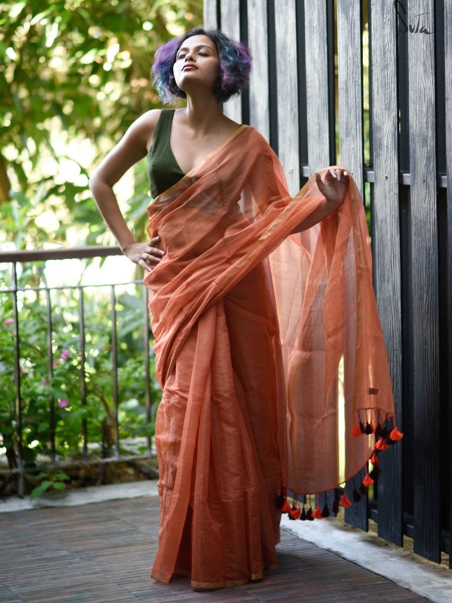 This lovely orange saree will become your favourite saree in no time!