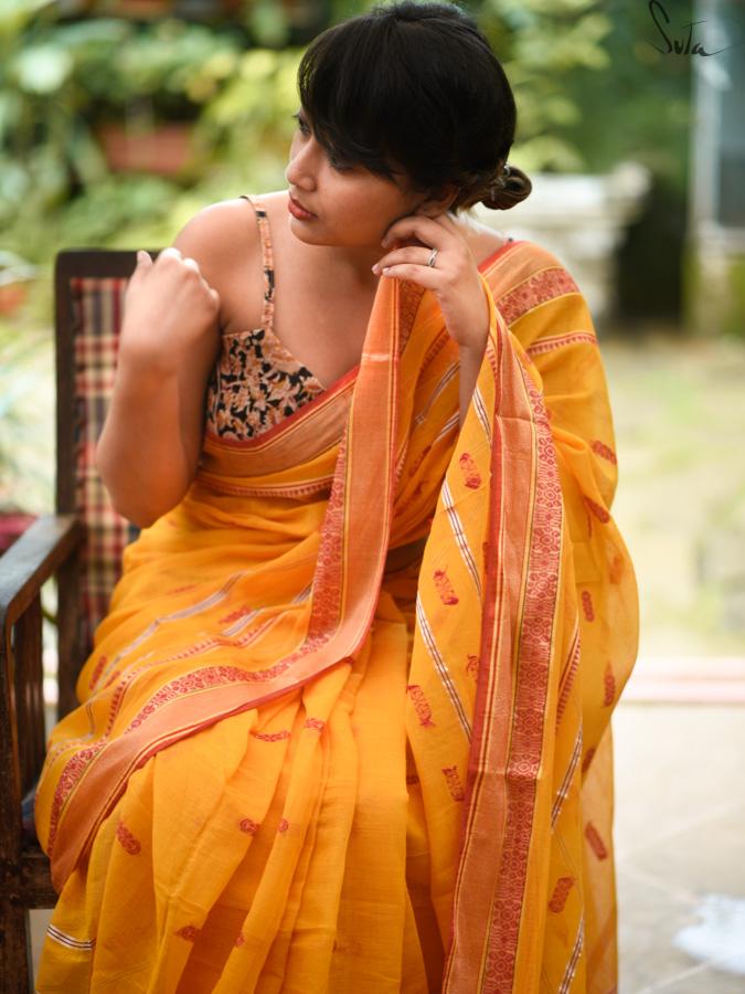 The handloom cotton is a type of fabric that is woven using hand operated looms. Two sets of interlacing yarns, the warp (length) and weft (width), are woven on a mechanised loom operated by weavers. These looms do not use electricity. Human handling lends the fabrics a unique feel and renders the fabrics more value. The resultant fabric is softer, more durable and much more comfortable than machine-made fabrics. Handloom cotton is more breathable and thus feels lighter in summers and provides more insulation in winters. The dyeing process also becomes easier for handloom cotton as the colour penetration is substantially more. Hues are absorbed better thus look resplendent on handloom cotton.