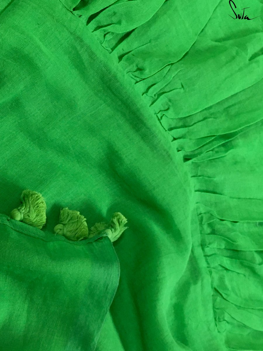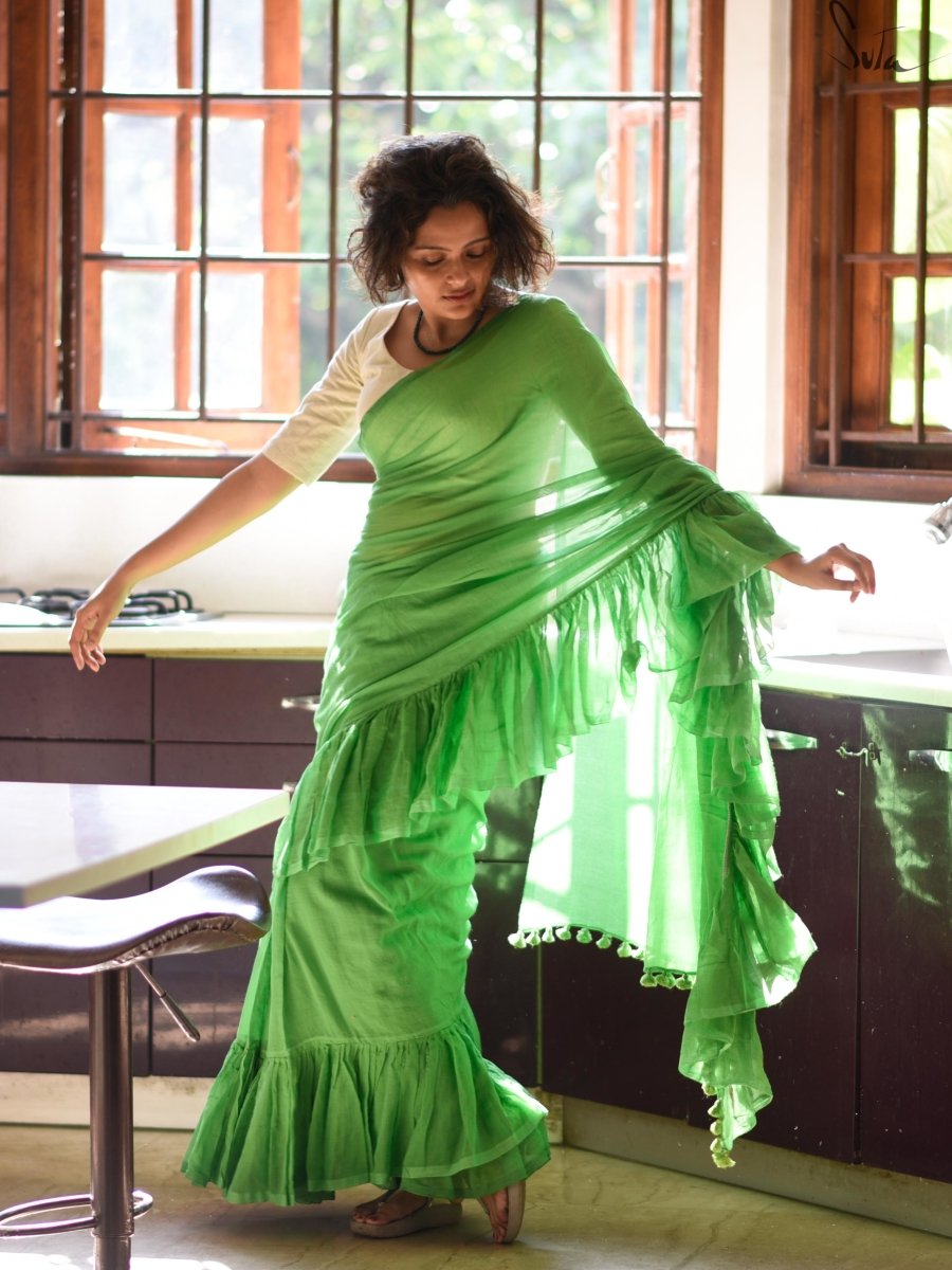 Ruffles are the perfect addition to the incredibly soft and light made-in-heaven Mul fabric. These pretty ruffle sarees are an amazing addition to your wardrobe because they offer the perfect mix of elegance and spunk.