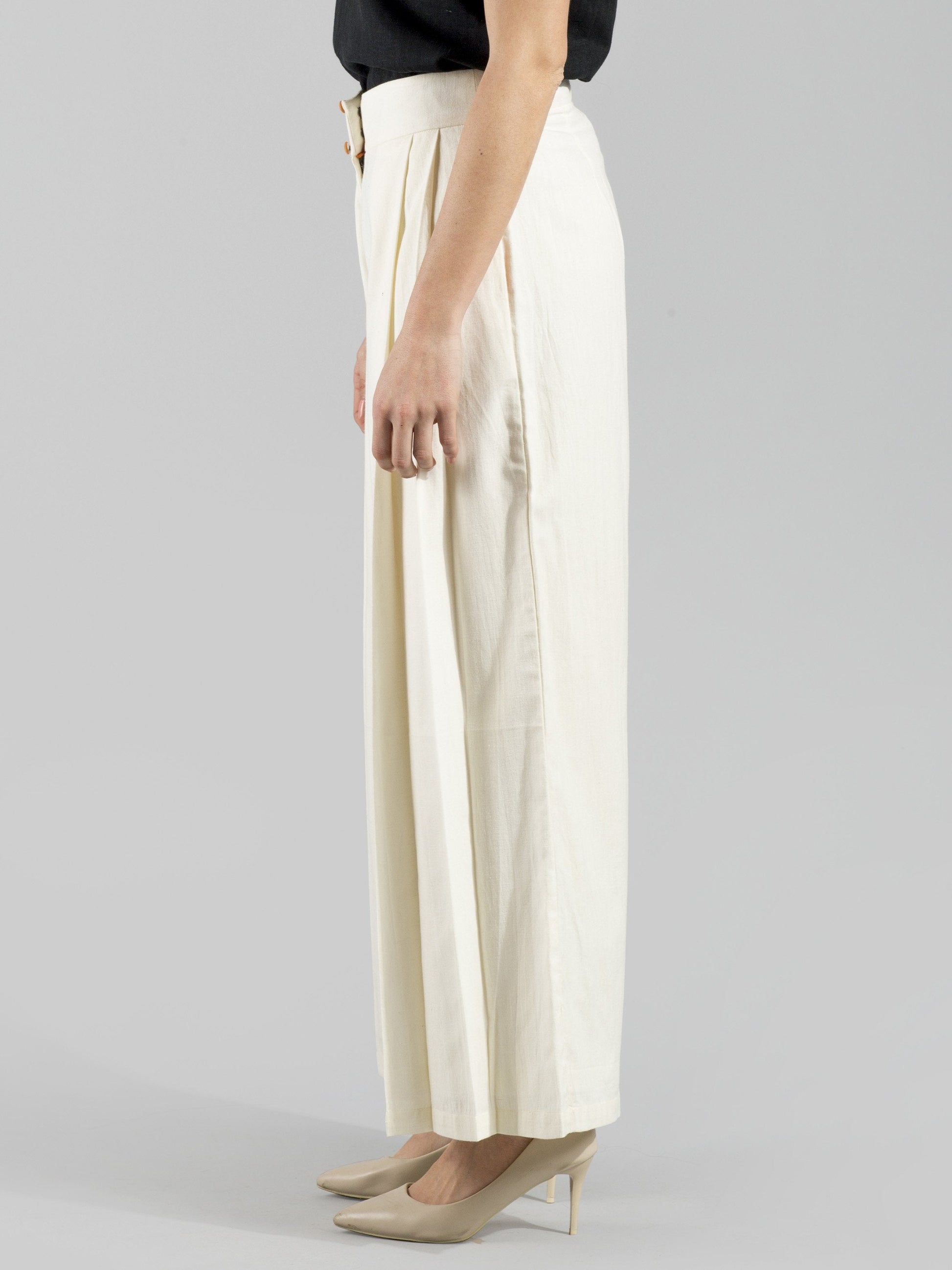 Pleated Wide Legged Pants - Ivory
