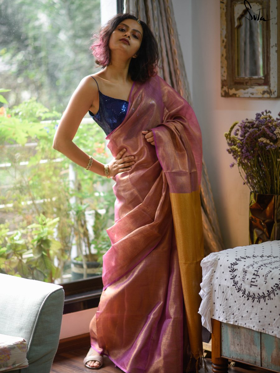This saree is a blend of linen with zari that gives the fabric an ethereal look and feel! Zari has always been used to infuse that special glow, making fabrics look festive and full of shine. As the zari celebrates you by building a halo of light around you, revel in the beauty and join in the celebration!
