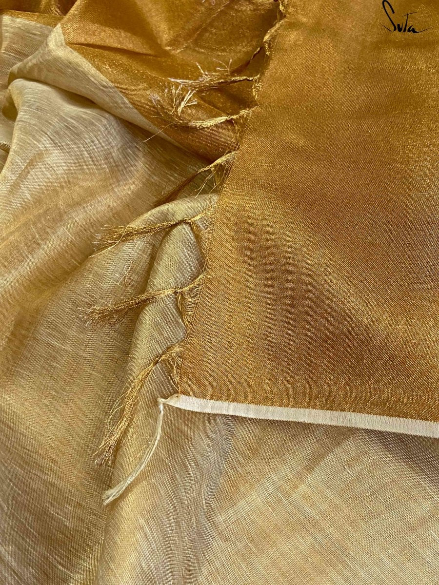 This ivory and deep gold saree in linen and zari is a dream come true!