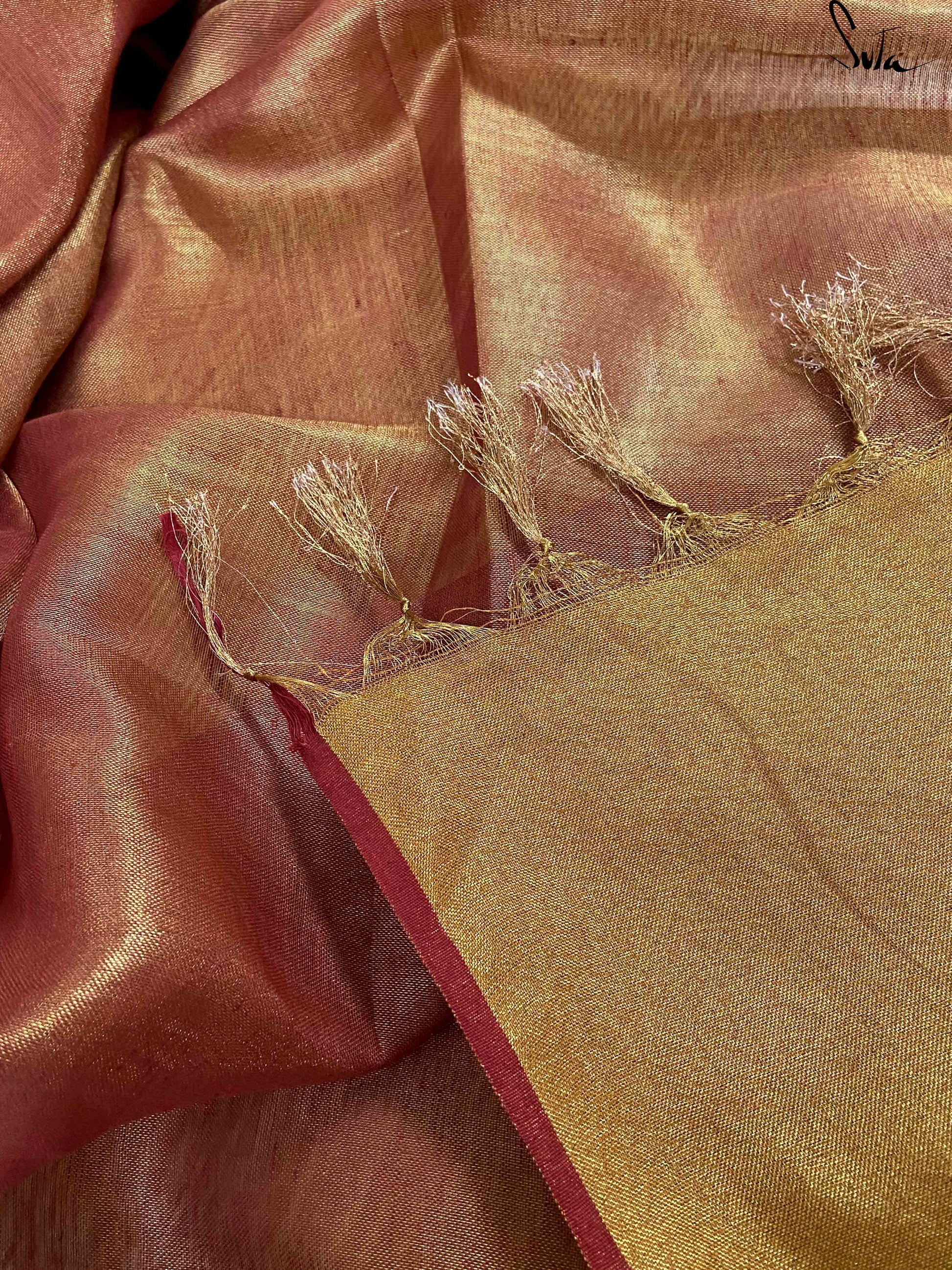 This saree is a blend of linen with zari that gives the fabric an ethereal look and feel! Zari has always been used to infuse that special glow, making fabrics look festive and full of shine. As the zari celebrates you by building a halo of light around you, revel in the beauty and join in the celebration!