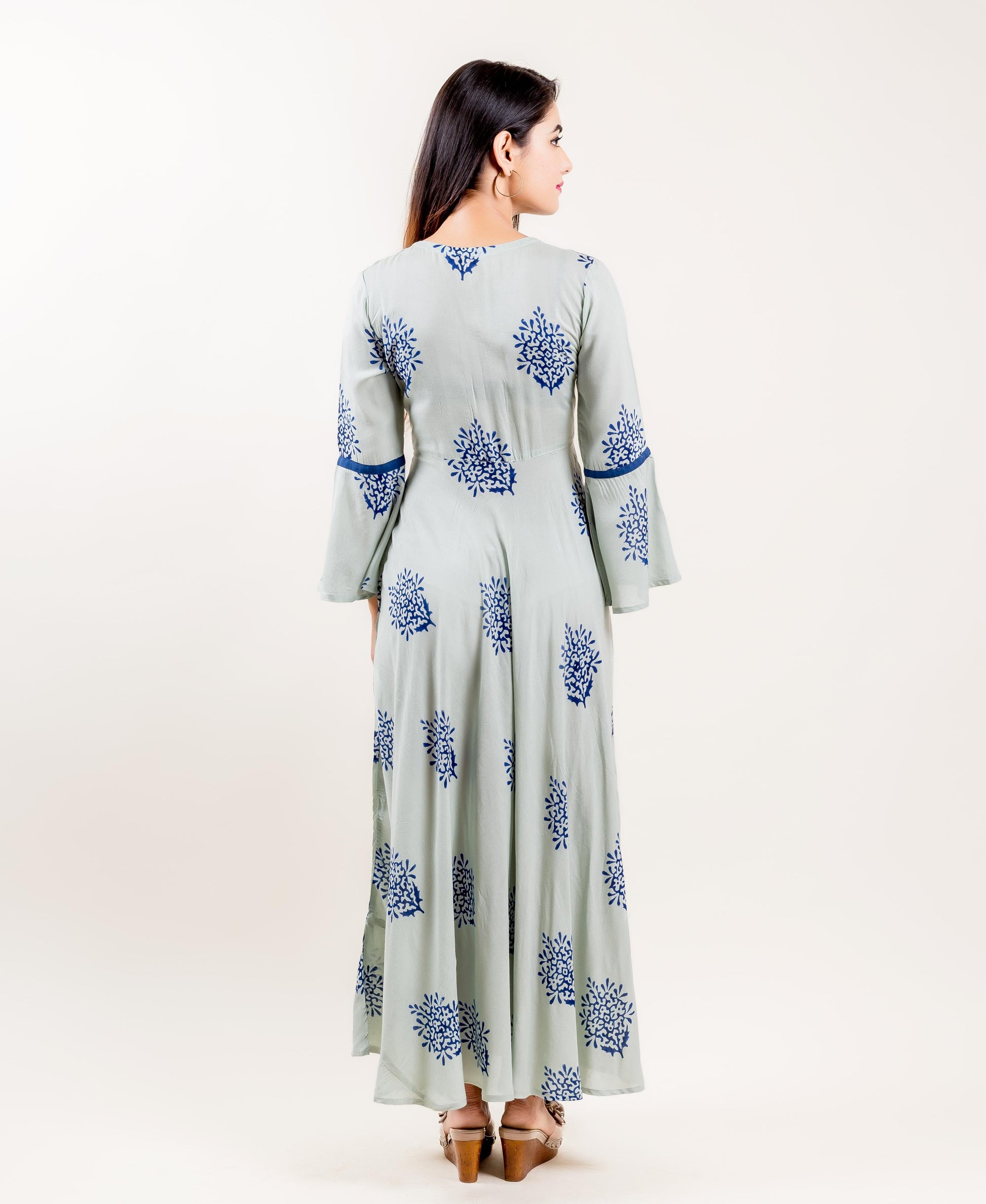 Rayon Bell Sleeved Indo Western Dress In Blue