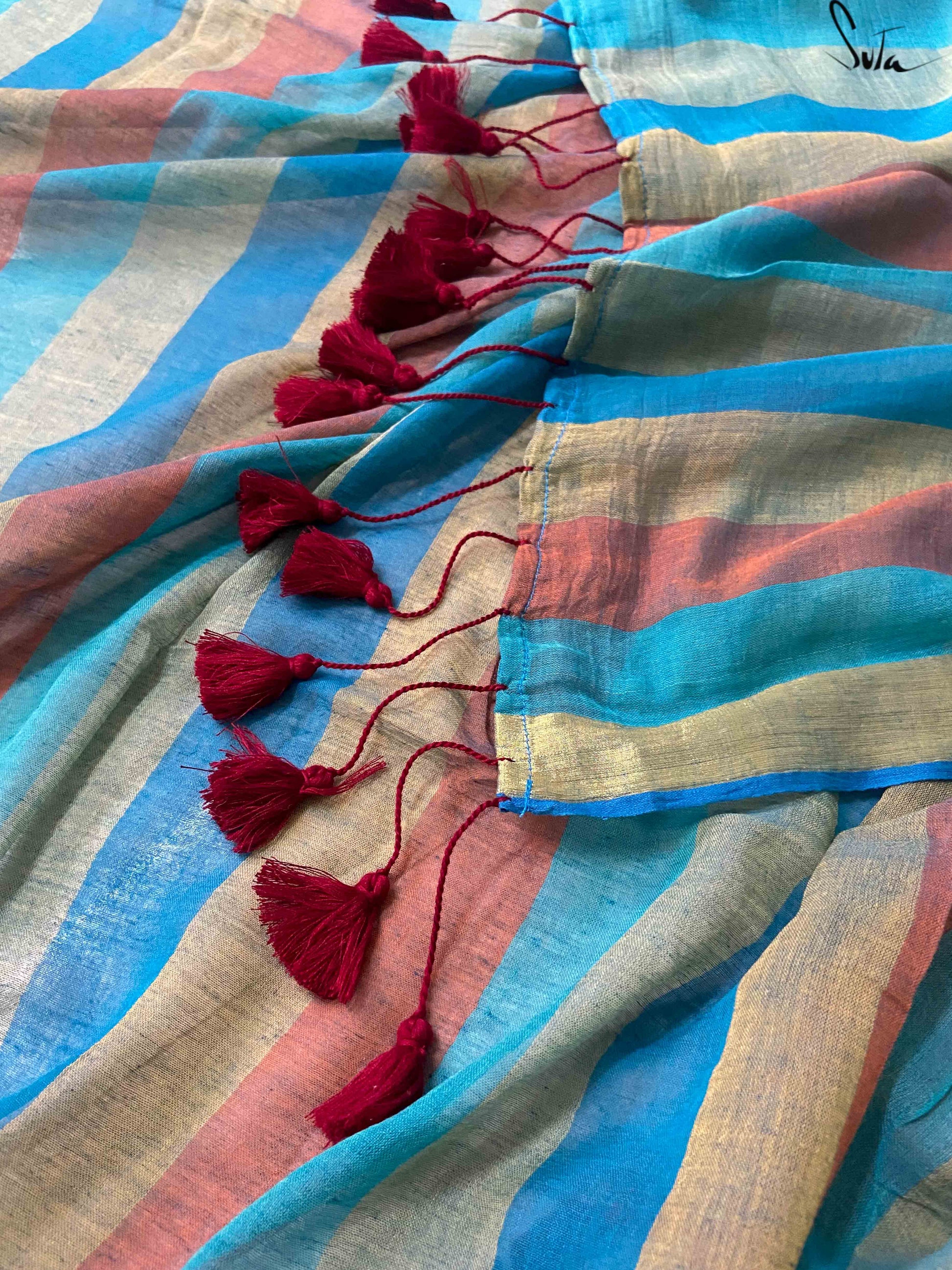 The mul cotton is what we call ‘made in heaven’ at Suta. Known in West Bengal as mul mul, the fabric is buttery soft and delicately beautiful. The weave of this fabric is very fine, and this lends a very fluid texture to it that makes draping it a breeze. It is truly like a hug that wraps you in its love!