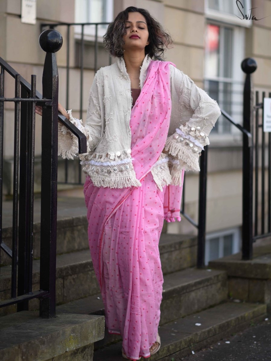 This gorgeous made in heaven mul saree in pink is a dreamy drape!