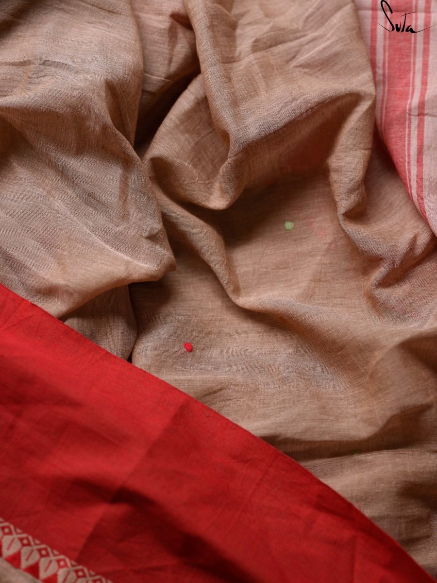 This gorgeous handloom cotton saree in brown and red hues is a dream!