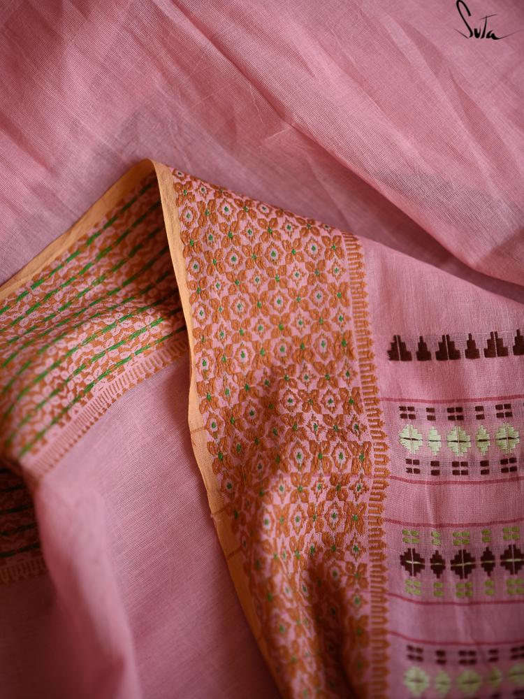 The handloom cotton is a type of fabric that is woven using hand operated looms. Two sets of interlacing yarns, the warp (length) and weft (width), are woven on a mechanised loom operated by weavers. These looms do not use electricity. Human handling lends the fabrics a unique feel and renders the fabrics more value. The resultant fabric is softer, more durable and much more comfortable than machine-made fabrics. Handloom cotton is more breathable and thus feels lighter in summers and provides more insulation in winters. The dyeing process also becomes easier for handloom cotton as the colour penetration is substantially more. Hues are absorbed better thus look resplendent on handloom cotton.