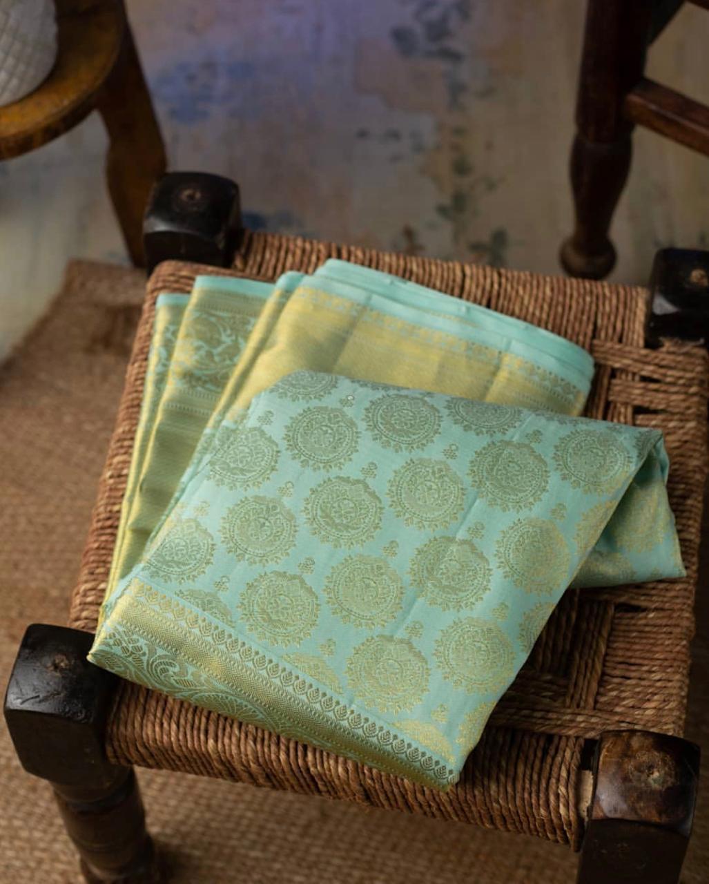 Valiba Sky-Gold Beautiful Rich Pallu And Jacquard Saree