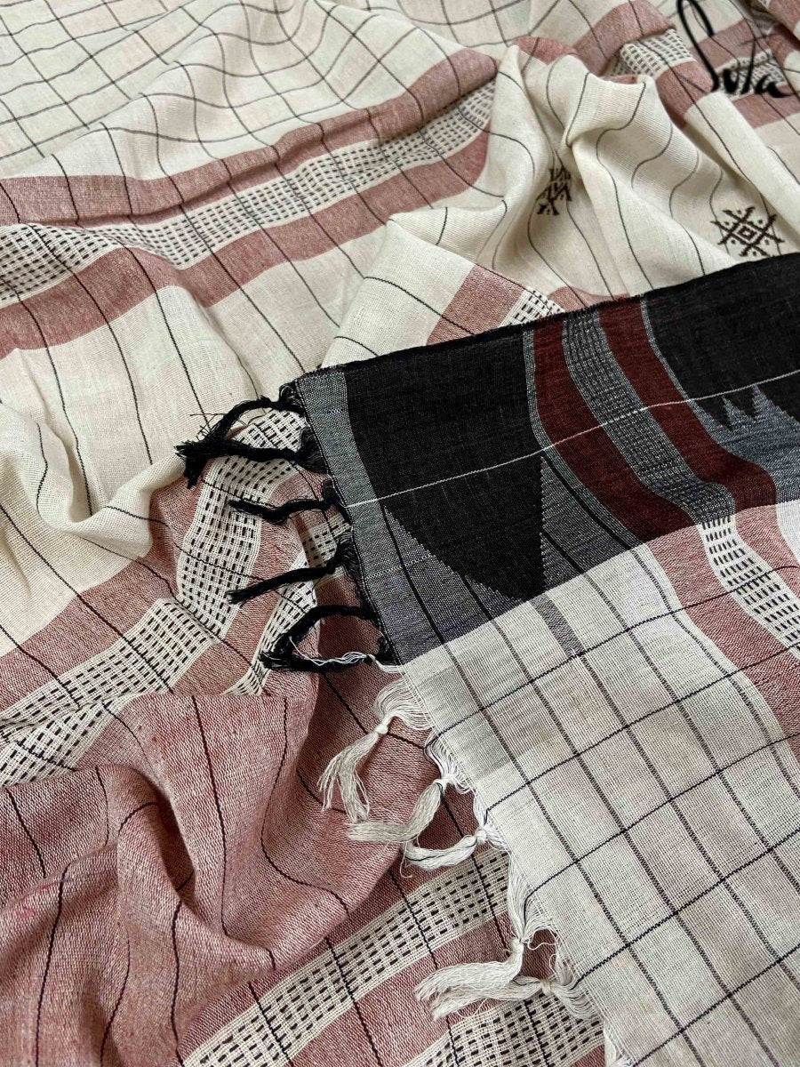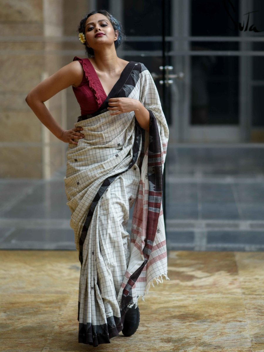 This beautiful off-white Kotpad cotton saree is named after the characteristic stomping that is done in the process of creating these sarees at various stages, especially after washes. This Stomped Jewel is a performance!