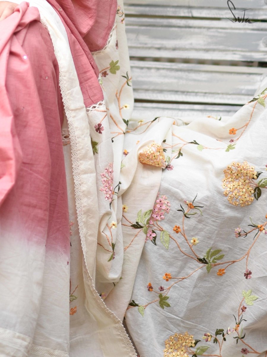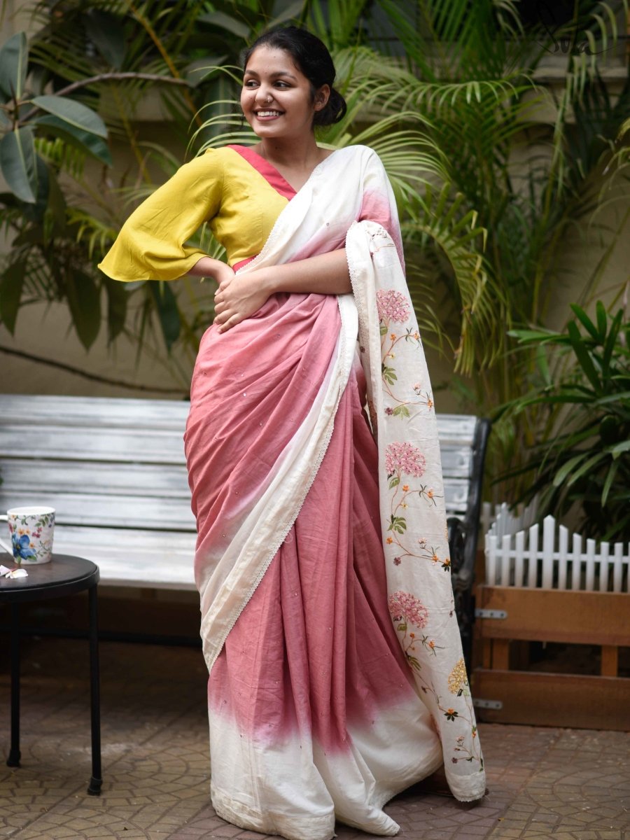 This white and pink cotton saree ticks all the right boxes. Don’t miss it!