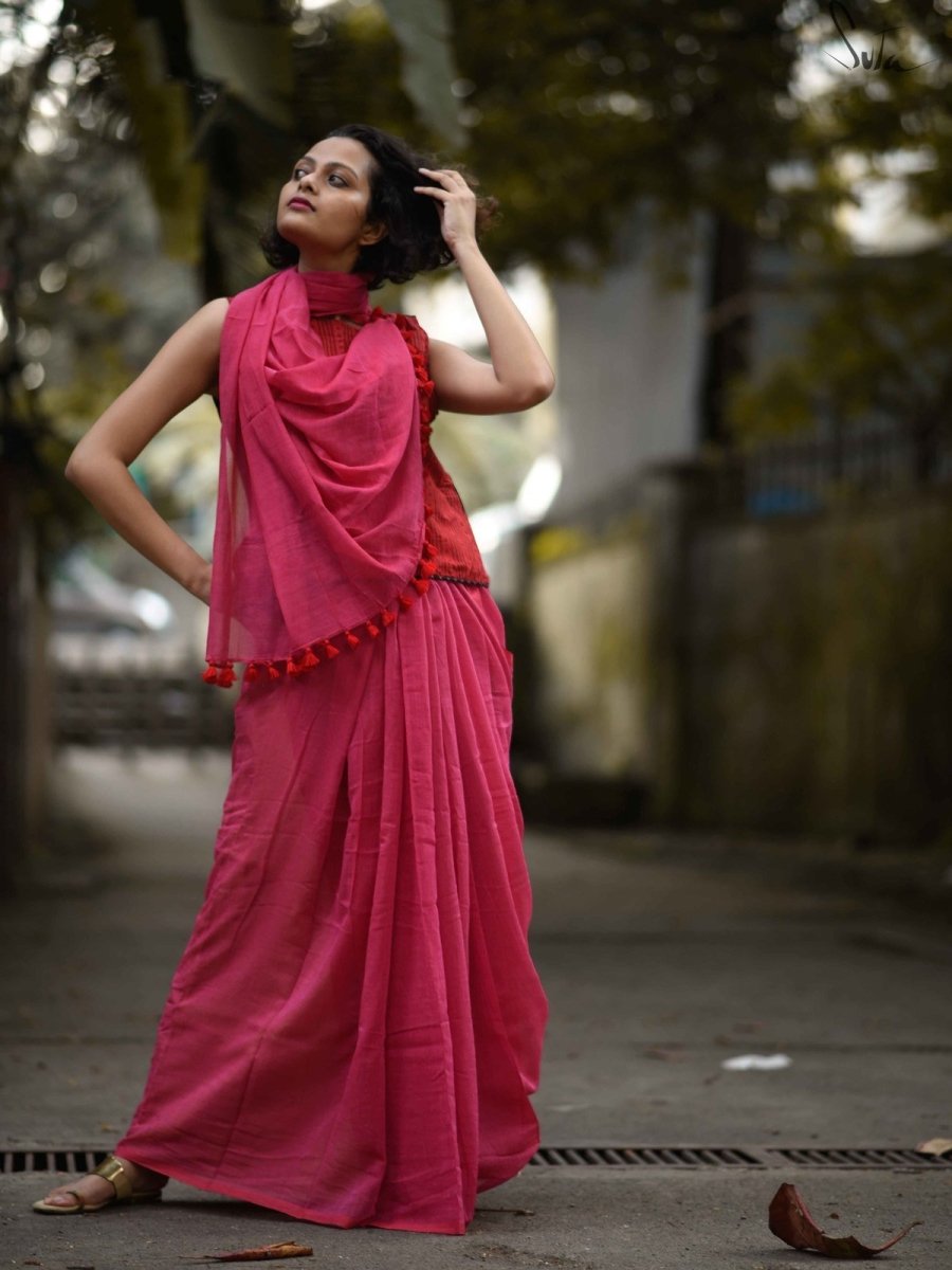 The mul cotton is what we call ‘Made in Heaven’ at Suta. Known in West Bengal as mul mul, the fabric is what can be categorised as muslin cotton. It is believed that this fine method of weaving cotton can be traced back to even before the Indus valley civilisation. What makes this fabric special is the almost magical process of weaving it. Cotton fibres are separated and spun into strong threads. The lightest and the most delicate fibres are separated and are then spun into muslin thread. These are then woven into fabrics by skilled weavers. The history of muslin weaving is a beautiful chapter in the history of Indian textiles. The process of the yore was much more complex and involved many unique tools that look primitive but worked like magic. The upper jaw of a catfish was used to initially clean the cotton before spinning. To separate the lightest fibres, a Dhunkar (a bamboo bow) was used, which when strung in a distinctive way made the lighter fibres rise above the heavier ones. This process gave the title ‘woven air’ to the muslin fabric. Weavers famously wove on looms that were at ground level and operated the looms from pits dug in the ground. Even during the Mughal era, the muslin fabric was seen as a symbol of power for its finesse. History is full of anecdotes to prove the awe that the muslin fabric generated. Emperor Aurangzeb is said to have chided his daughter Zeb-un-Nisa for appearing naked in the court when in reality she had been wearing several layers of the muslin cloth! Such was the fabric’s delicateness. The almost invisible fabric had made an Arab traveller in the 10th century remark that the degree of fineness is such that a garment can be drawn through a ring of a middling size. During the British colonisation and even during the Mughal rule, the art of weaving muslin took a hit as weavers were treated poorly and drought hit many of the weaving centres. As a result, today, the process of weaving has seen a lot of change. Nevertheless, the essence of it hasn’t changed and the charm of the fabric still remains.
