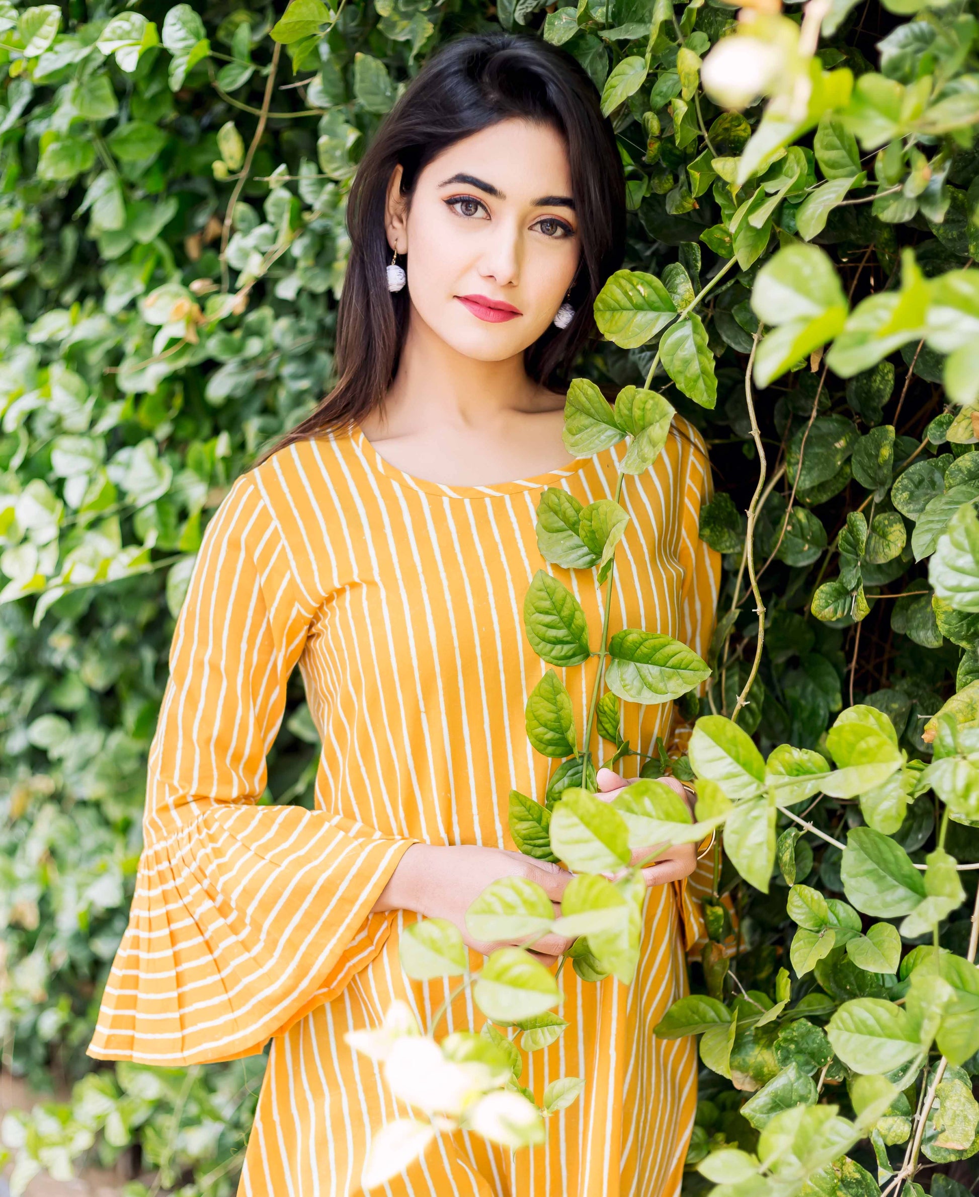 Stripped Hand Block Printed Dress with Bell Sleeves