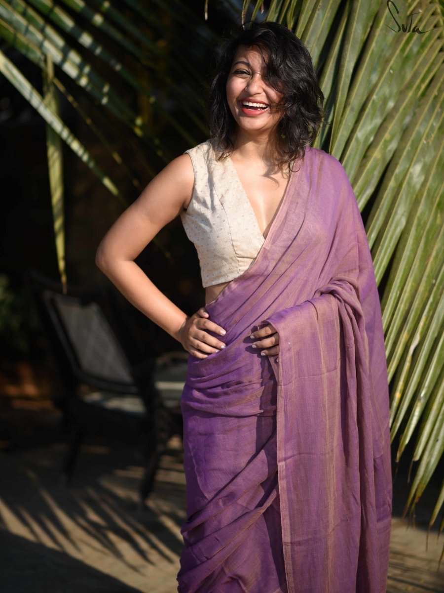 This elegant Modal and made-in-heaven mul saree in Lavender is a dream to drape!