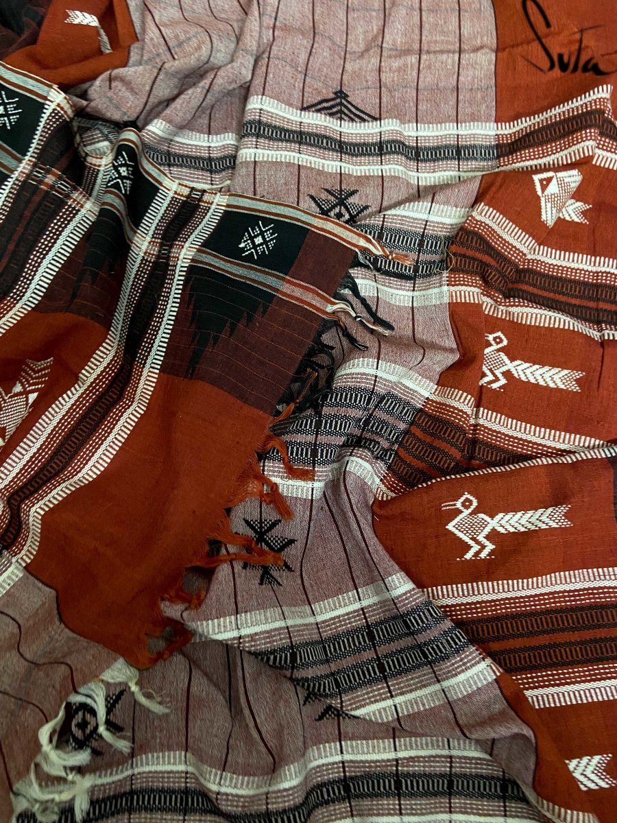 Kotpad is a fabric that shares its name with and comes to life in a quaint town in Odisha. The handspun, handwoven, naturally-dyed, fabric is nothing short of magic. Nature’s divinity is truly captured in its yards of beauty as the many elements of creation come together for this fabric. From taking bundles of natural fibres, prepping them for dyeing using castor oil treatments, applying cow-dung, treating with wood-ash washes to dyeing the fibres using the extract of the Aal tree (Indian Mulberry) and other natural concoctions, every step is meticulously followed to get the threads ready to weave. Then, weavers bring the fabric to life by weaving together the threads, interspersed with simple designs that reflect the world as we all see it. The entire process takes 20 – 25 days from start to finish and being chemical-free is kind on the planet as it is on our skin.