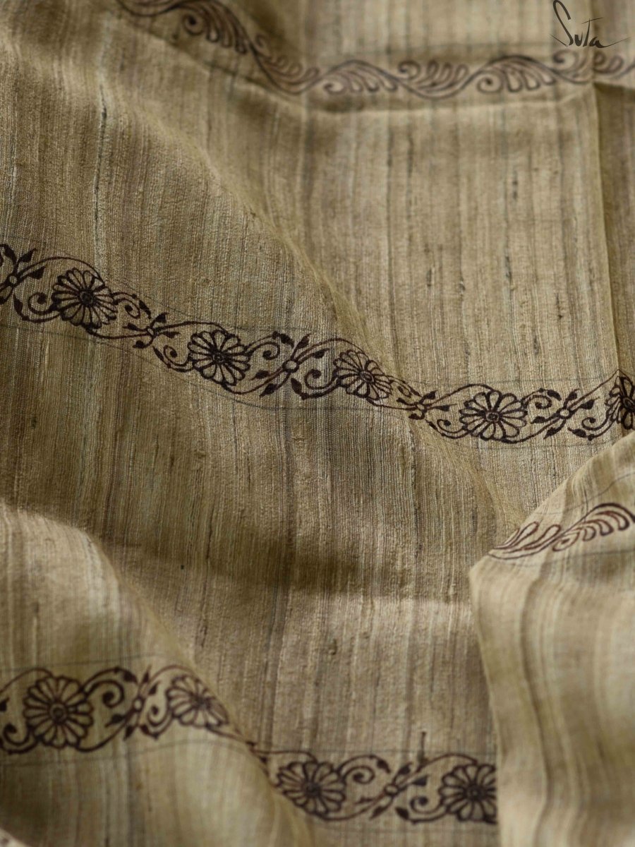 At Suta, our sarees become the canvases to bring this beautiful art-form to your wardrobes. The painting is done on Tussar silk.