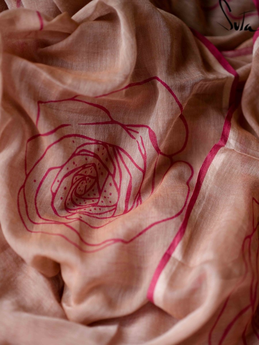 The designs on this fabric come alive on our made-in-heaven mul sarees through an intricate process known as screen-printing. This process involves the usage of a mesh-screen made of synthetic polymers that is strung onto a metal or wooden frame at high tension. A stencil with the negative image of what is to be printed is placed beneath the screen and emulsion is applied to create a positive image that lets the dye seep through the screen. The dye is then applied on the fabric through the screen to print the desired image. Every design for screen-printing is made with a live-sized screen and each colour of printing requires a separate screen.So, the process of printing gets more and more intricate with addition of more colours in a design.It also makes the work of artisans more laborious as a result. The screens that are created for printing are stored with utmost care to keep them safe from damage or distortion.The lengthy procedure and the many steps involved become worth it when the beautiful final product is created.