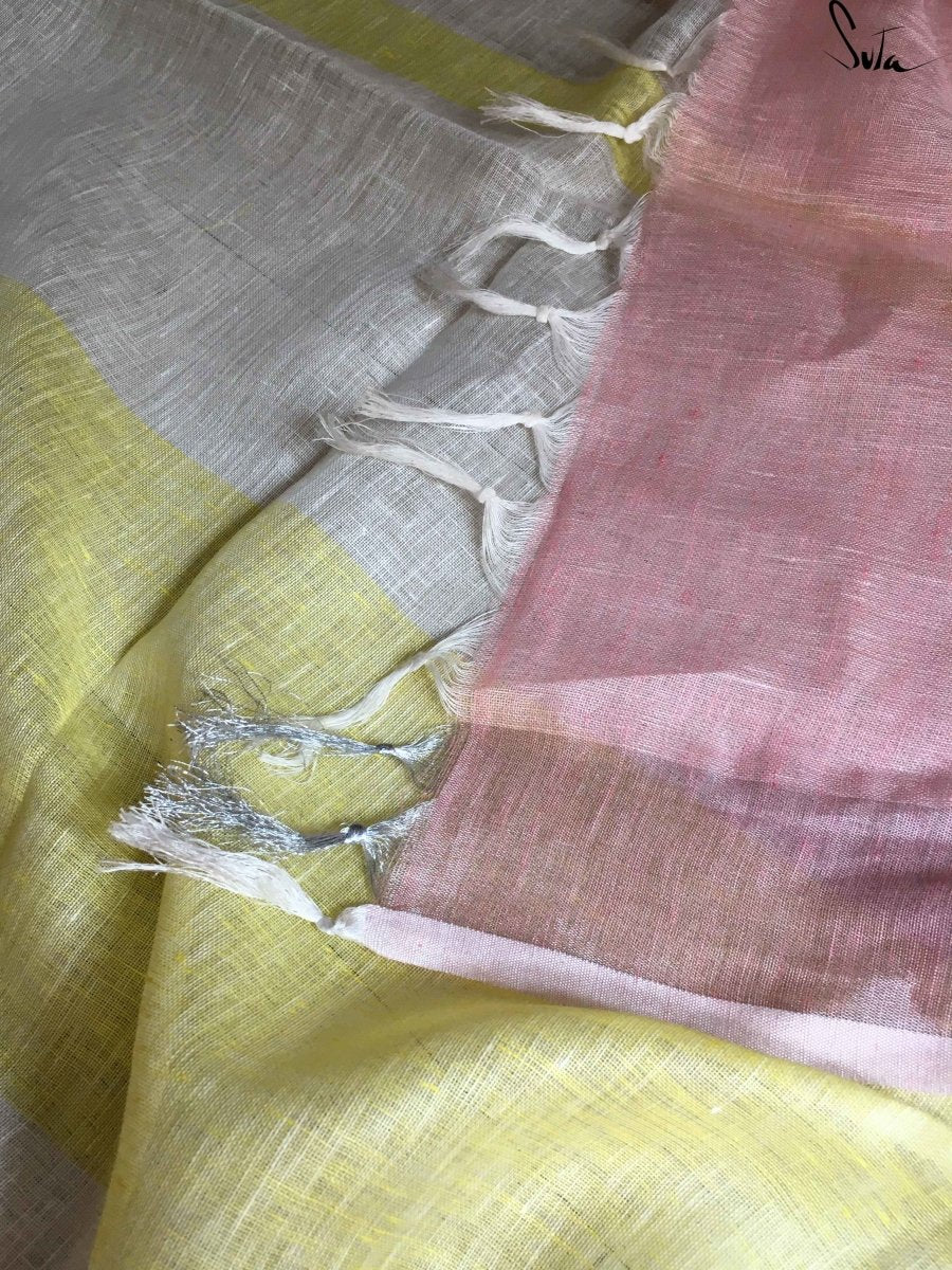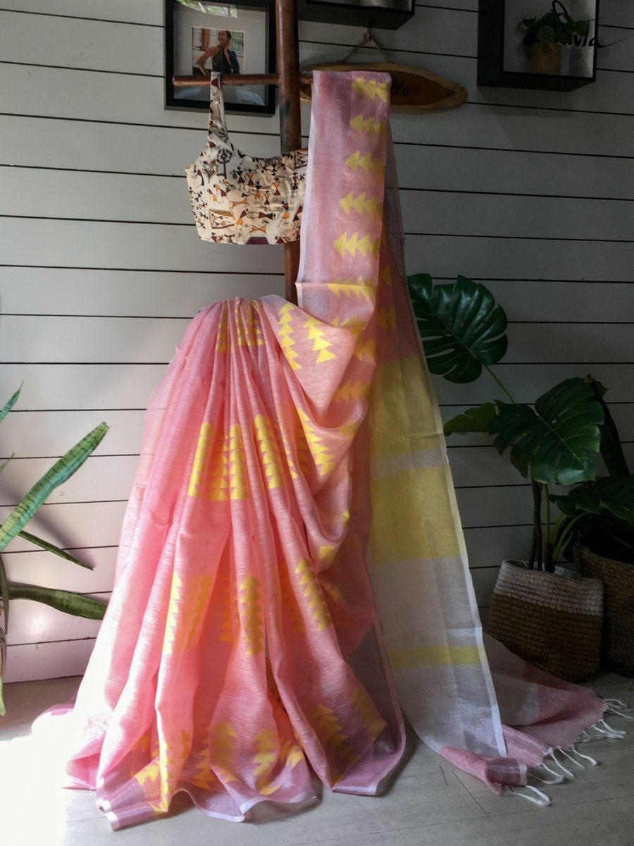 Linen is one of the oldest and most widely used fabrics thanks to its versatility. Particularly in countries that experience hot summers for a large part of the year, Linen exists more as a soft summer breeze that just happens to cover up their body as clothing! It feels oh-so-comfortable to the skin while appearing crisp and sturdy even in humid conditions. However, it is not a bed of roses to make a Linen saree. The stunning Linen saree come from pretty hardcore and labour-intensive procedures. Flax is grown (it takes around 100 days to cultivate) and its fibre is separated before it is woven into fabric. Each of these processes involves manual labour and extensive physical work. The separation of flax fibres involves a process called retting and the weaving is done with specific counts as per requirements. The earliest Linen in Egypt is said to have had a thread count of 450 to an inch, which is finer than anything woven today! In a world of factory produced fully machine made fabrics, the Linen stands stubbornly demanding the involvement of workers. So, the Linen that reaches you is a story of these heroes who pack in that extra little bit of love along with their amazing work.