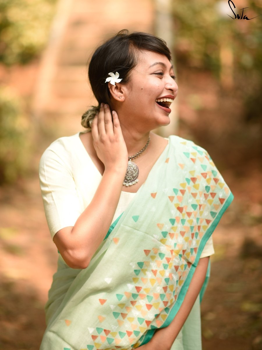 The mul cotton is what we call ‘made in heaven’ at Suta. Known in West Bengal as mul mul, the fabric is buttery soft and delicately beautiful. The weave of this fabric is very fine, and this lends a very fluid texture to it that makes draping it a breeze. It is truly like a hug that wraps you in its love!