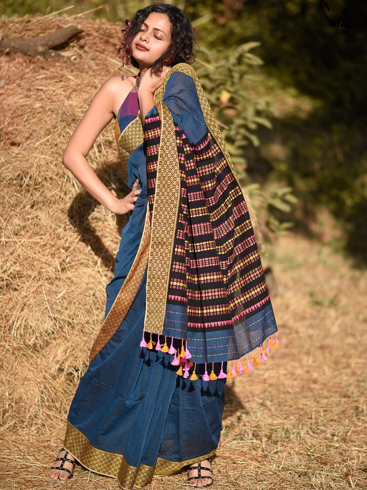 This handloom cotton saree in beautiful blue is simply gorgeous!