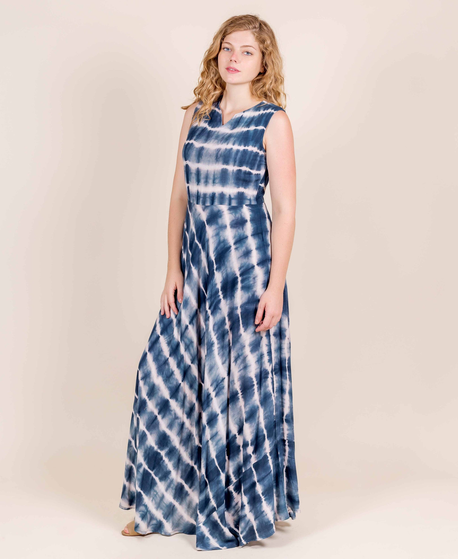 Indigo Tie and Dye Empire Cut Maxi Indo Western Dress