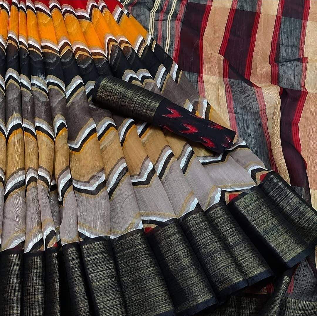 Valiba Pure Soft Linen Cotton Digital Sarees
