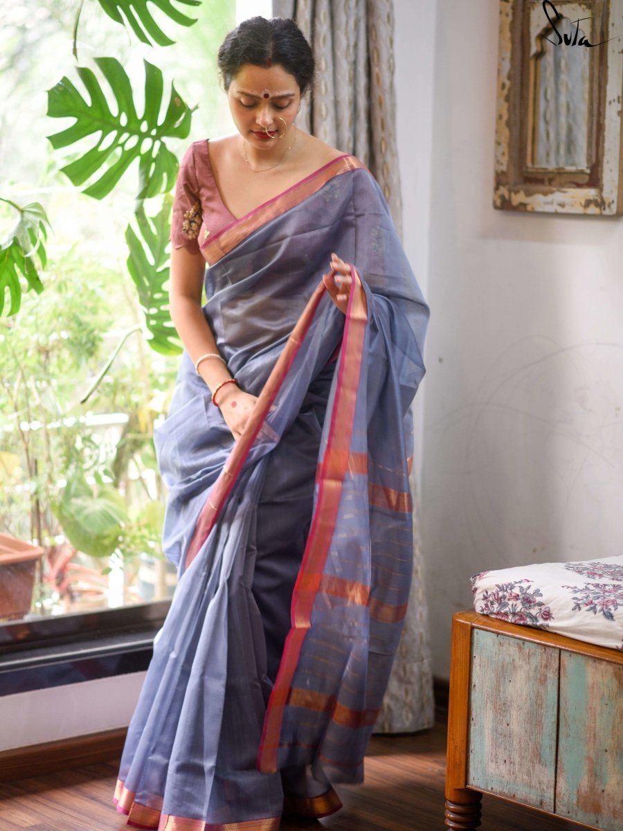 Silk is one of the most elegant fabrics there is and the sheer variety of silks that are made in India are a treasure. One of the most popular varieties of silk is the silk.This silk variety is known to have originated from Maheshwar, Madhya Pradesh and it exudes a regality that is subtle and captivating. The fabric for this saree consists of hand-woven, hand-dyed silk and cotton woven together. The beauty of this fabric is in its simplicity that quietly boasts of a rich craft. The feel of a silk cotton fabric is rich and the luscious threads of the fabric come together to glide on the skin.