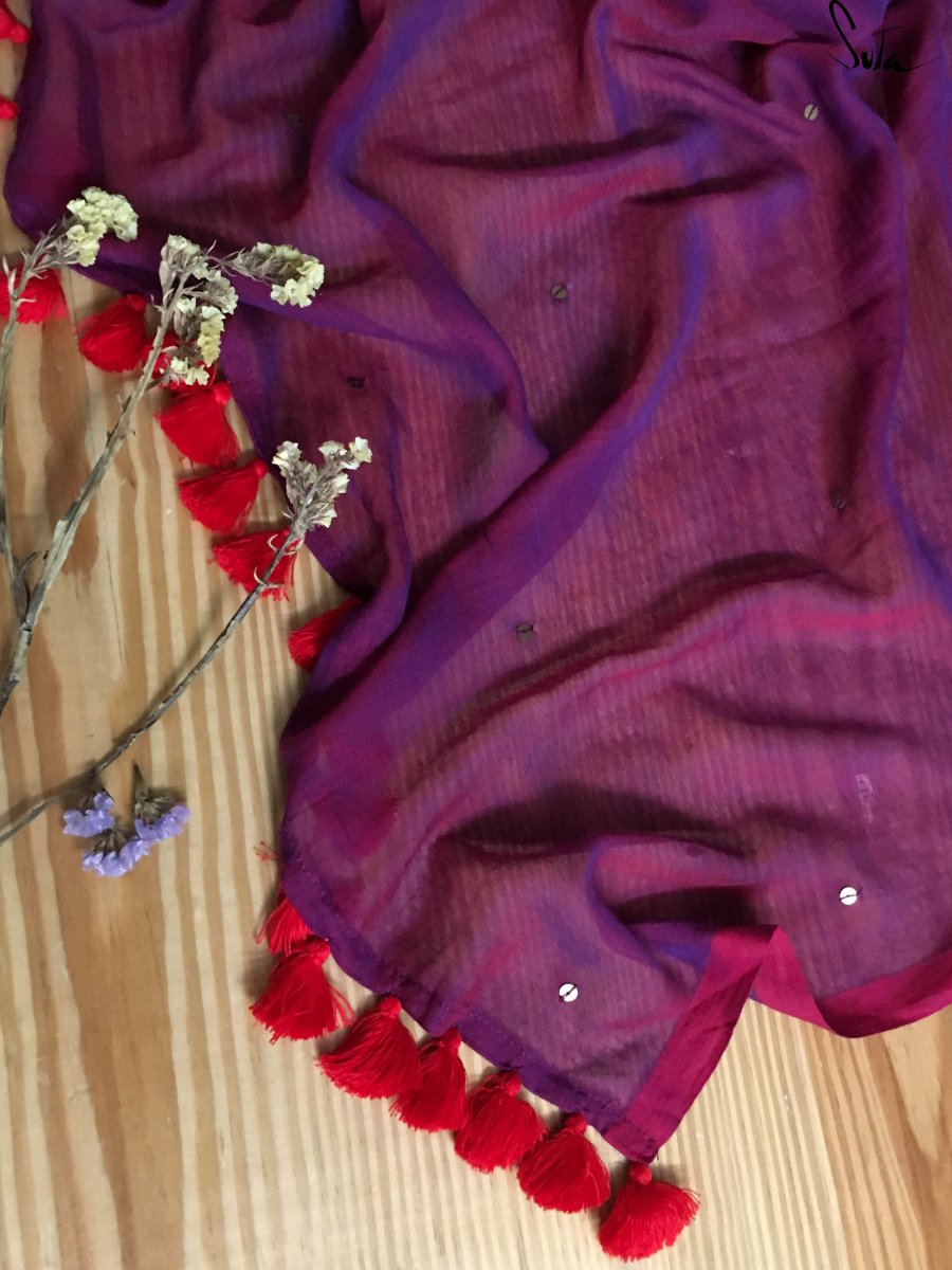 The mul cotton is what we call ‘Made in Heaven’ at Suta. Known in West Bengal as mul mul, the fabric is what can be categorised as muslin cotton. It is believed that this fine method of weaving cotton can be traced back to even before the Indus valley civilisation. What makes this fabric special is the almost magical process of weaving it. Cotton fibres are separated and spun into strong threads. The lightest and the most delicate fibres are separated and are then spun into muslin thread. These are then woven into fabrics by skilled weavers. The history of muslin weaving is a beautiful chapter in the history of Indian textiles. The process of the yore was much more complex and involved many unique tools that look primitive but worked like magic. The upper jaw of a catfish was used to initially clean the cotton before spinning. To separate the lightest fibres, a Dhunkar (a bamboo bow) was used, which when strung in a distinctive way made the lighter fibres rise above the heavier ones. This process gave the title ‘woven air’ to the muslin fabric. Weavers famously wove on looms that were at ground level and operated the looms from pits dug in the ground. Even during the Mughal era, the muslin fabric was seen as a symbol of power for its finesse. History is full of anecdotes to prove the awe that the muslin fabric generated. Emperor Aurangzeb is said to have chided his daughter Zeb-un-Nisa for appearing naked in the court when in reality she had been wearing several layers of the muslin cloth! Such was the fabric’s delicateness. The almost invisible fabric had made an Arab traveller in the 10th century remark that the degree of fineness is such that a garment can be drawn through a ring of a middling size. During the British colonisation and even during the Mughal rule, the art of weaving muslin took a hit as weavers were treated poorly and drought hit many of the weaving centres. As a result, today, the process of weaving has seen a lot of change. Nevertheless, the essence of it hasn’t changed and the charm of the fabric still remains.