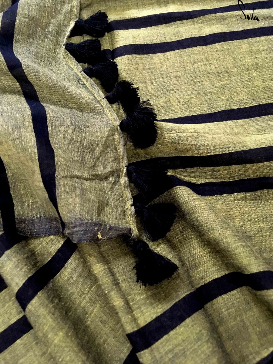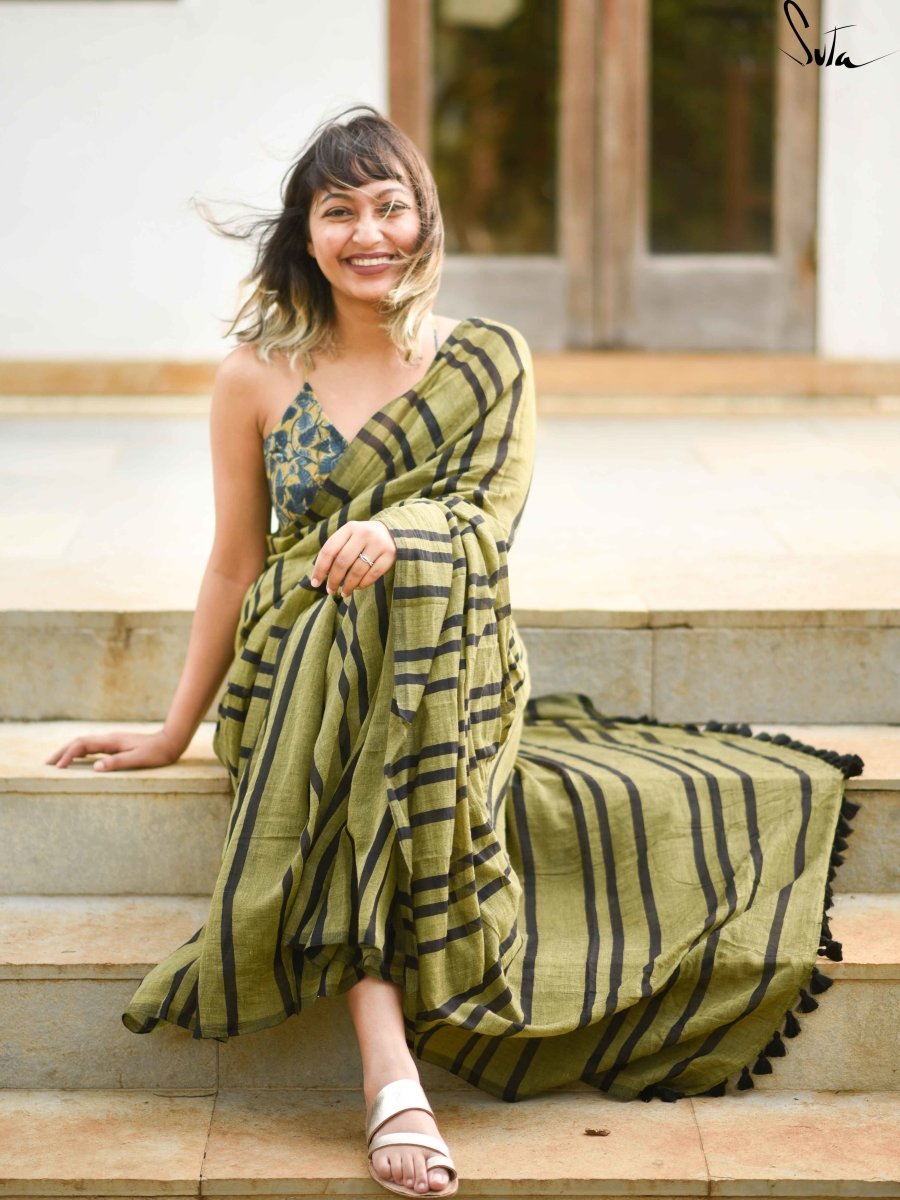 This made in heaven mul saree in olive and black colours is a dream!