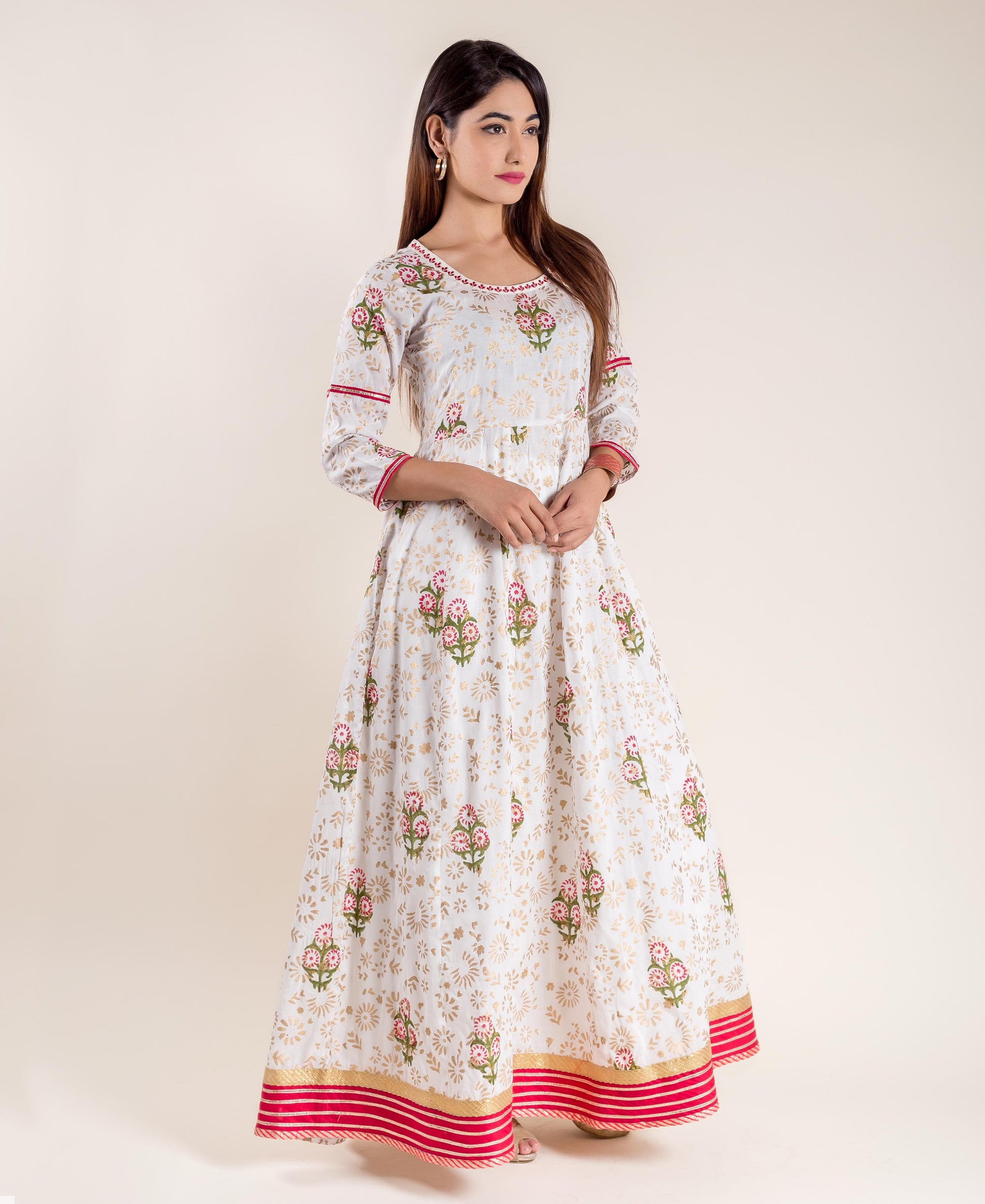 - Style / Pattern – Block Print / Gold Printed Floor Length Flared Princess Gown