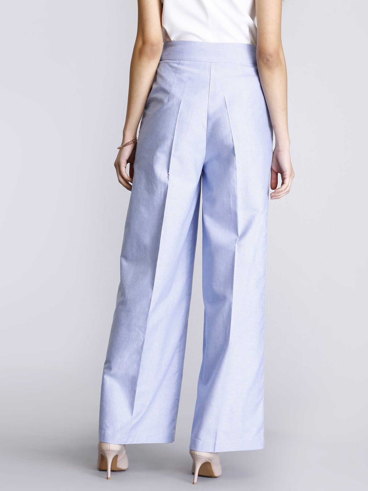 Nothing spells "relaxing" better than these wide leg pants. These have delicate front creases, functional pockets, side zip for closure and look fantastic when paired with light colours. Crafted from Cotton, these are breathable, comfortable and natural.