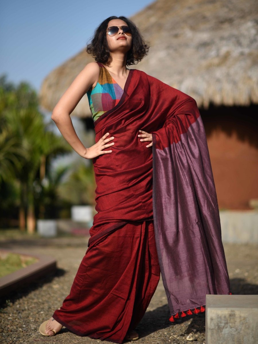 Cotton fabric dates back to some of the most ancient civilisations and it has a strong presence in the modern wardrobe as well. The softness and lightness of cotton combined with its strength and versatility makes it one of the most popular choices, especially for the Indian climate. We took this simple, elegant fabric and combined it with acrylic for that added sheen and voila! We love what we see and the saree falls so beautifully that it feels like second-skin!