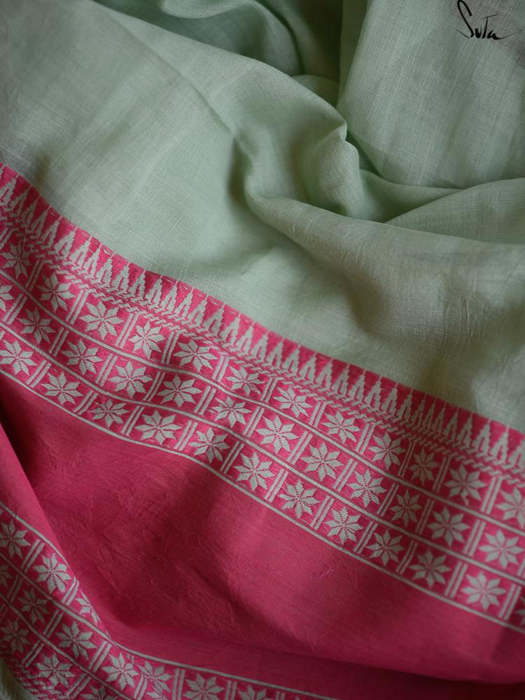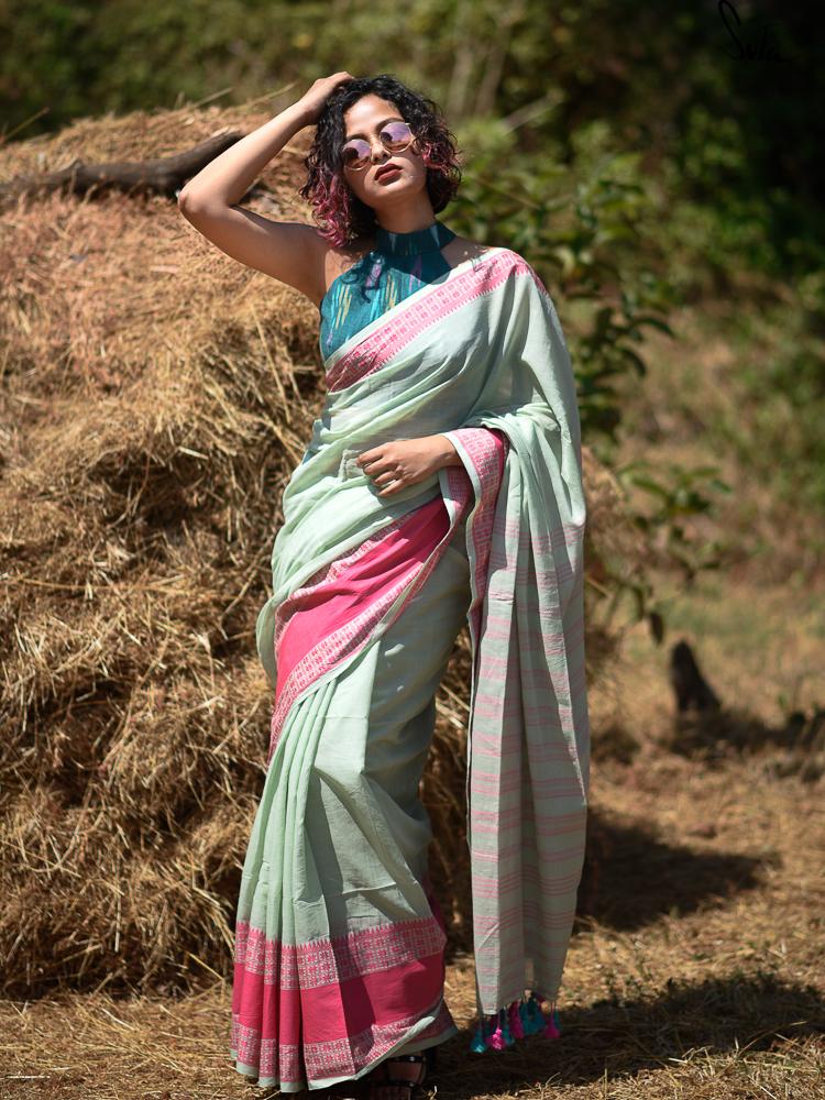 This green and pink handloom cotton saree is as dreamy as it gets!