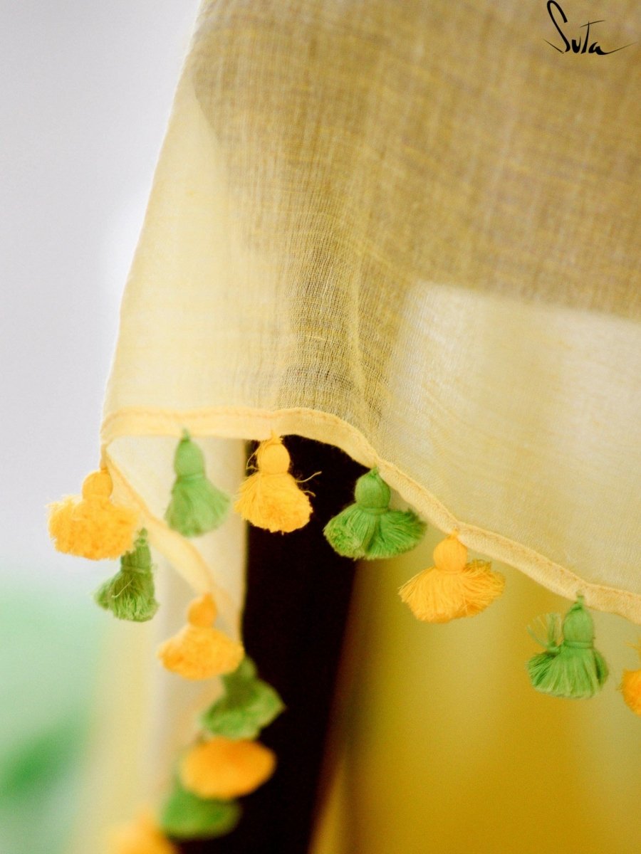 The mul cotton is what we call ‘Made in Heaven’ at Suta. Known in West Bengal as mul mul, the fabric is what can be categorised as muslin cotton. It is believed that this fine method of weaving cotton can be traced back to even before the Indus valley civilisation. What makes this fabric special is the almost magical process of weaving it. Cotton fibres are separated and spun into strong threads. The lightest and the most delicate fibres are separated and are then spun into muslin thread. These are then woven into fabrics by skilled weavers. The history of muslin weaving is a beautiful chapter in the history of Indian textiles. The process of the yore was much more complex and involved many unique tools that look primitive but worked like magic. The upper jaw of a catfish was used to initially clean the cotton before spinning. To separate the lightest fibres, a Dhunkar (a bamboo bow) was used, which when strung in a distinctive way made the lighter fibres rise above the heavier ones. This process gave the title ‘woven air’ to the muslin fabric. Weavers famously wove on looms that were at ground level and operated the looms from pits dug in the ground. Even during the Mughal era, the muslin fabric was seen as a symbol of power for its finesse. History is full of anecdotes to prove the awe that the muslin fabric generated. Emperor Aurangzeb is said to have chided his daughter Zeb-un-Nisa for appearing naked in the court when in reality she had been wearing several layers of the muslin cloth! Such was the fabric’s delicateness. The almost invisible fabric had made an Arab traveller in the 10th century remark that the degree of fineness is such that a garment can be drawn through a ring of a middling size. During the British colonisation and even during the Mughal rule, the art of weaving muslin took a hit as weavers were treated poorly and drought hit many of the weaving centres. As a result, today, the process of weaving has seen a lot of change. Nevertheless, the essence of it hasn’t changed and the charm of the fabric still remains.